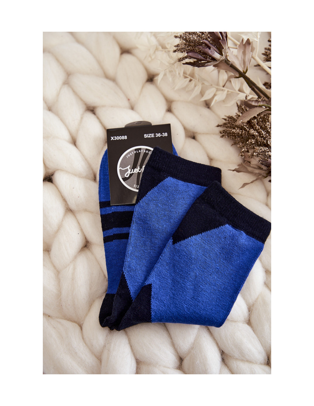 Klasikinės kojinės pagamintos iš 100 % medvilnės. Modelis iki kulkšnių su dviejų spalvų raštu. Priekyje puošta juostelėmis. Juostelė puikiai priglus prie kojos pločio. Puikiai tinka šaltesnėms dienoms su aukštesniais batais. Būtinai peržiūrėkite ir kitus kojinių modelius!
