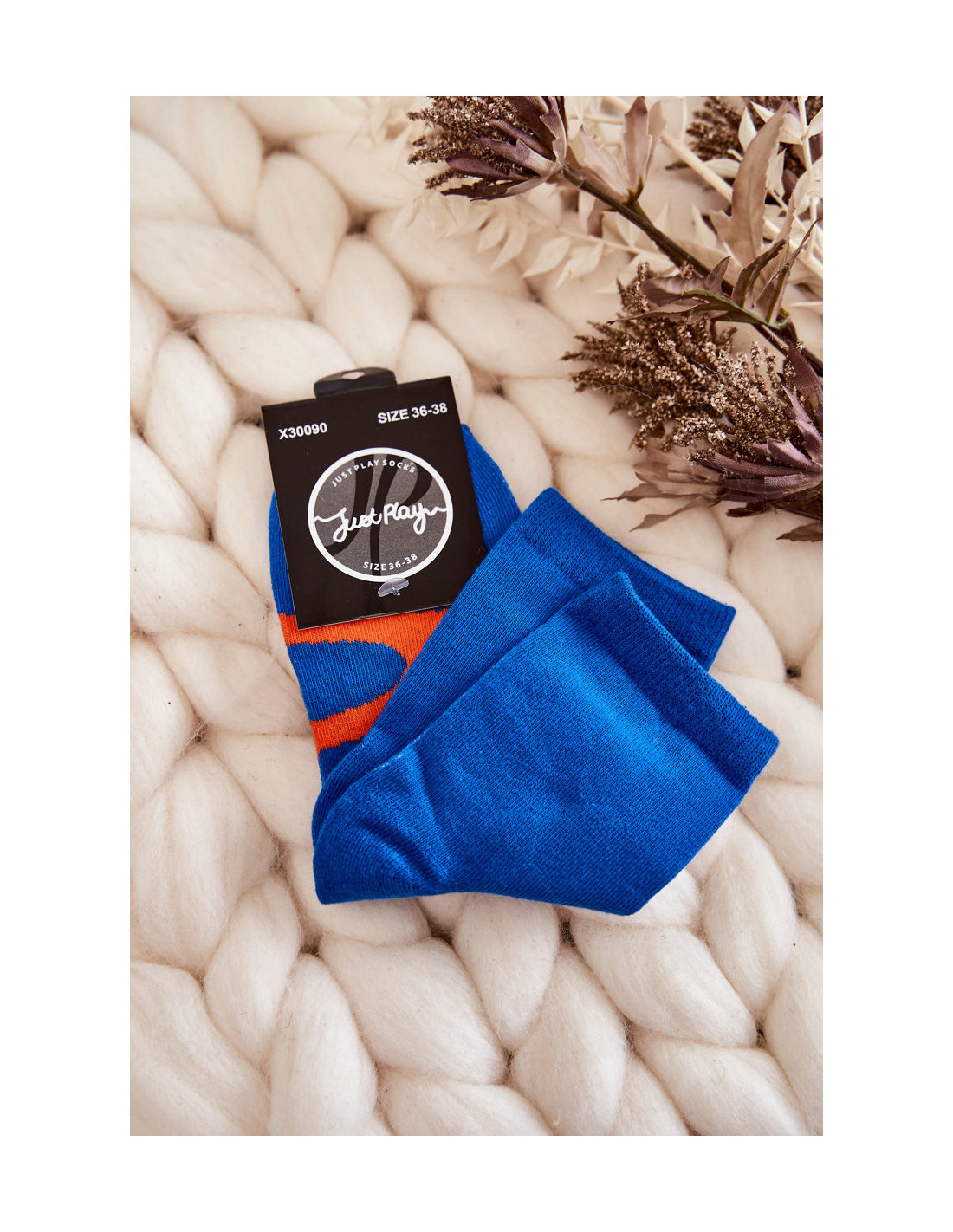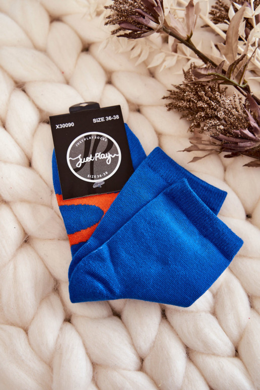 Moteriškos medvilninės kojinės, oranžinės spalvos, mėlynos spalvos