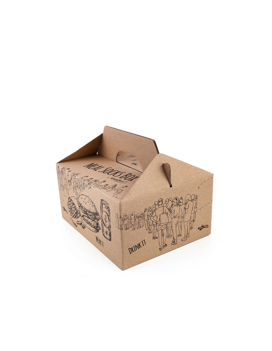 Meal Socks Box yra pasiūlymas visiems, kurie kiekvieną dieną trokšta linksmų kojinių ar greito maisto. Didžiausią alkį numalšins mėsainis, bulvytės ir skardinė alaus išsinešimui skirtame rinkinyje, kurie kartu sudaro 5 poras originalių kojinių. Rinkinys patiks moterims ir vyrams, kurie ieško neįprastų, medvilninių kojinių.