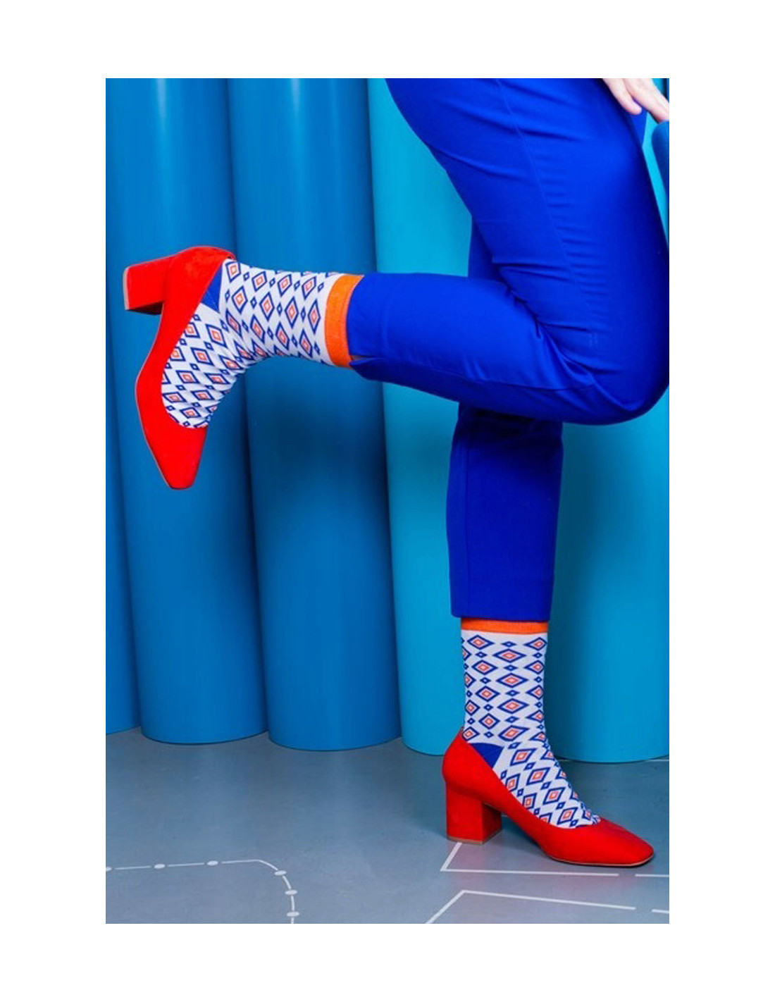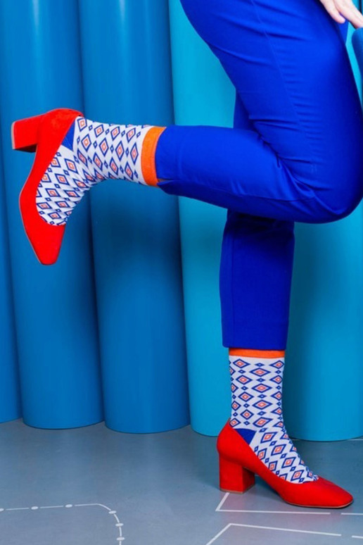 Dryžuotos kojinės ir geometriniai raštai. Ar tai neatrodo kaip tobulas spalvingas jūsų verslo kostiumo priedas? Galbūt pažįstate matematiką, kuris yra pamišęs dėl geometrijos. Arba architektas, mėgstantis proporcijas? Kiekvienam iš jų patiks šios geometrinių raštų kojinės!