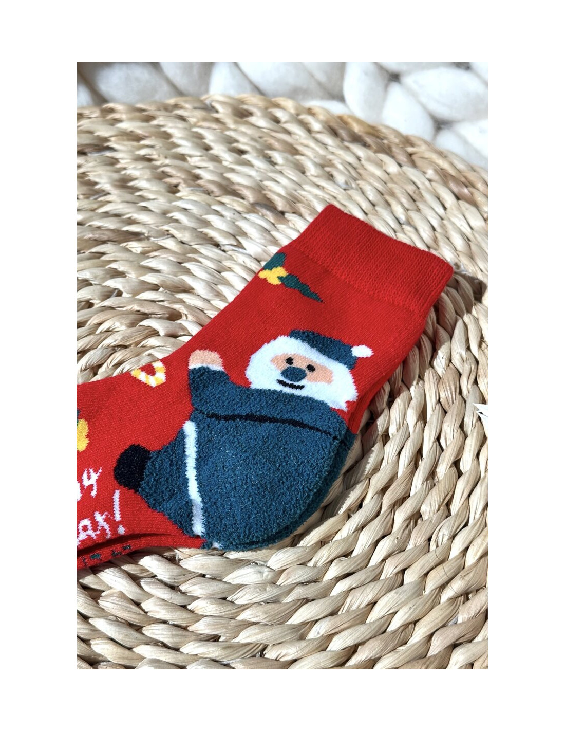 Vaikiškos kojinės iš medvilnės užtikrina komfortą visą dieną. Kojines puošia žavus kalėdinis motyvas su Kalėdų Senelio atvaizdu, kuris suteikia joms linksmą ir šventišką charakterį. Puikiai tinka šaltesnėms dienoms. Kojinytės yra įvairių dydžių, todėl lengvai priderinamos prie vaikų pėdučių. Puikus pasirinkimas kalėdinei dovanai arba kaip jūsų vaiko žiemos garderobo priedas.