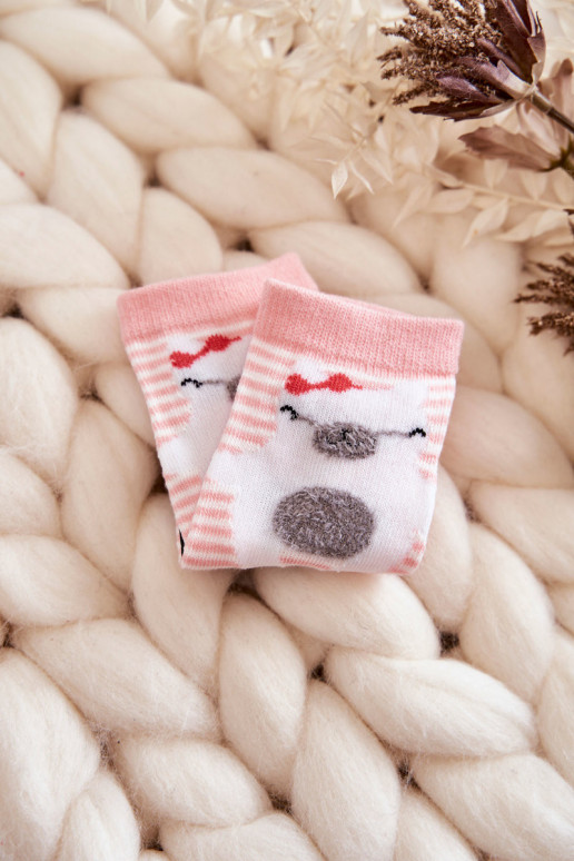 Vaikiškos dryžuotos kojinės su meškiuku Rožinė