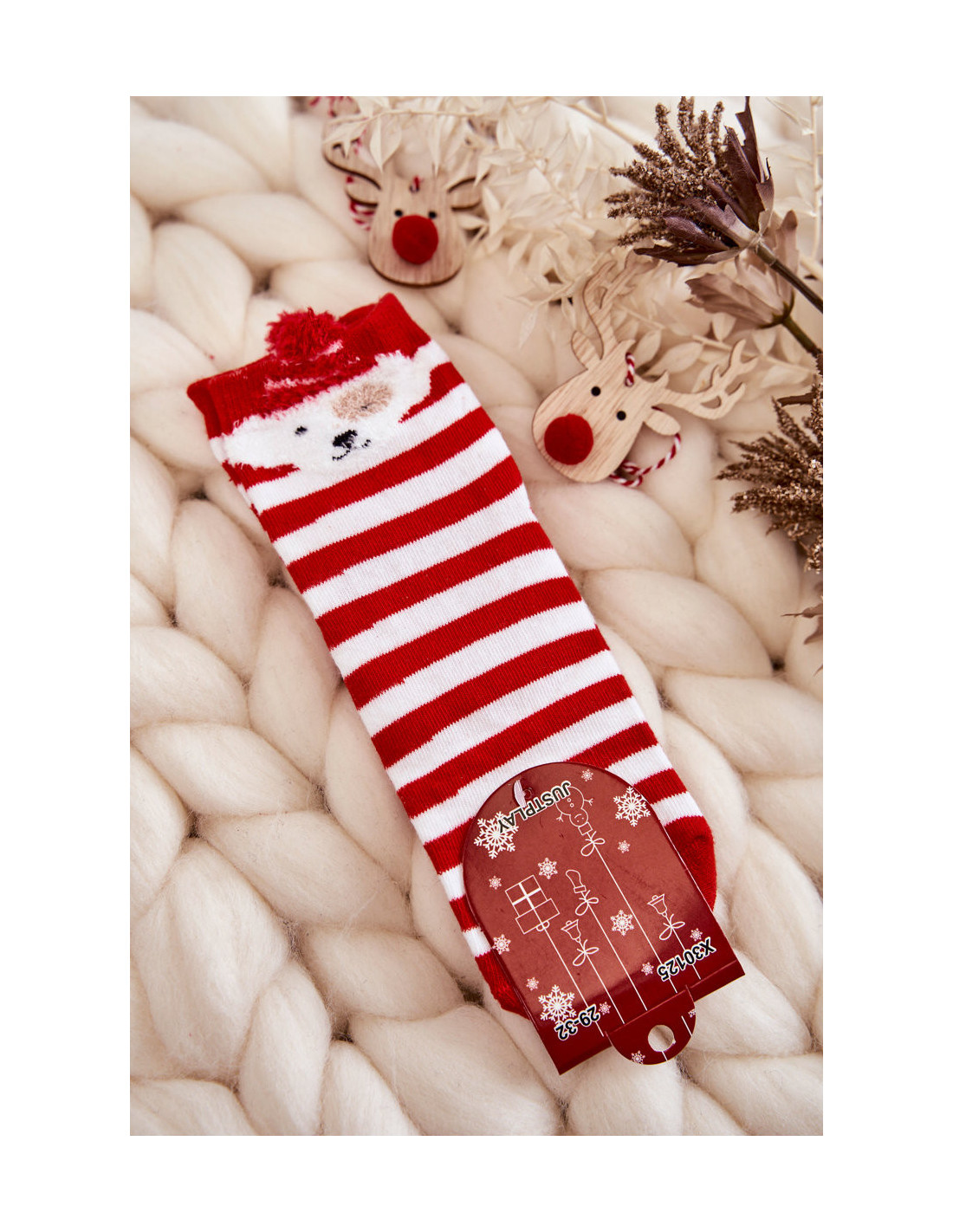 Madingos kalėdinių raštų kojinės. Modelis iki kulkšnių puikiai tiks šaltesnėms dienoms. Elastinė juostelė prisitaikys prie kojos pločio. Kojinės pasiūtos iš megzto audinio. Jie taip pat veiks kaip priedas prie dovanos! Nelaukite ilgiau ir įsigykite juos šiandien!