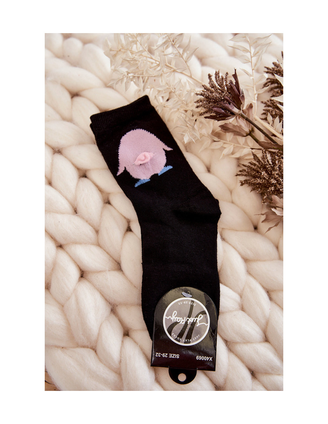 Juokingos, jaunatviškos kojinės su gyvūno motyvais su šiek tiek išsikišusiomis uodegomis. Puikiai tinka dovanai mylimam žmogui! Kojinės pagamintos iš 100% medvilnės. Elastinė juostelė prisitaikys prie kojos pločio. Modelis iki blauzdos. Pirkite, kol jie neišnyks!