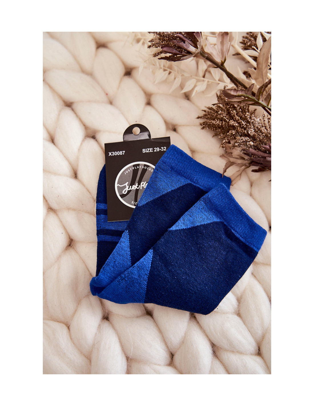 Dviejų spalvų jaunimo kojinės su juostelėmis tamsiai mėlynos ir mėlynos spalvos