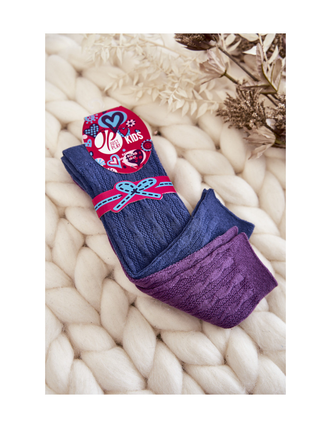 Unikalios, aukštų kelių ilgio kojinės tikrai patiks daugeliui mažųjų mados mylėtojų! Jie puikiai atrodys su rudens ir žiemos stilizacijomis. Pagaminta iš 100% medvilnės. Visoje pusėje yra dekoratyvinis įspaudas. Apvalkalas puikiai atitiks kojų plotį ir neleis kojinėms slysti.