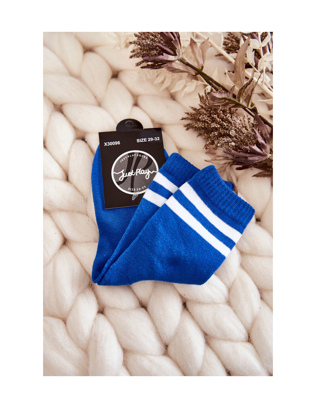 Jaunimo medvilninės sportinės kojinės su mėlynomis juostelėmis
