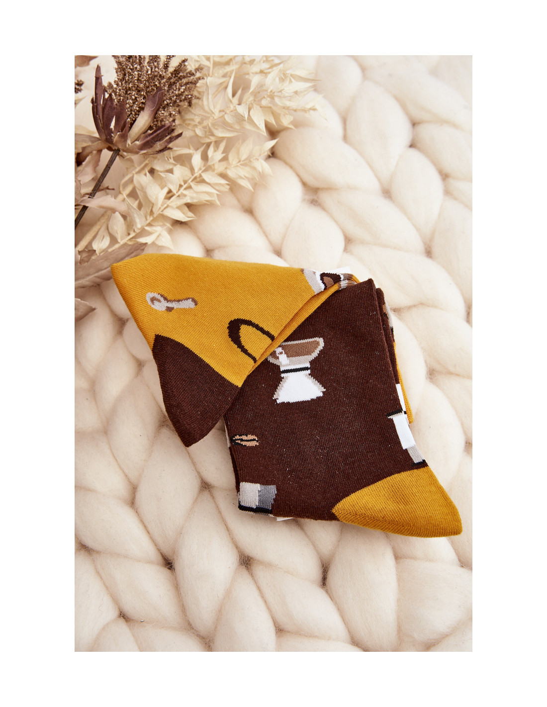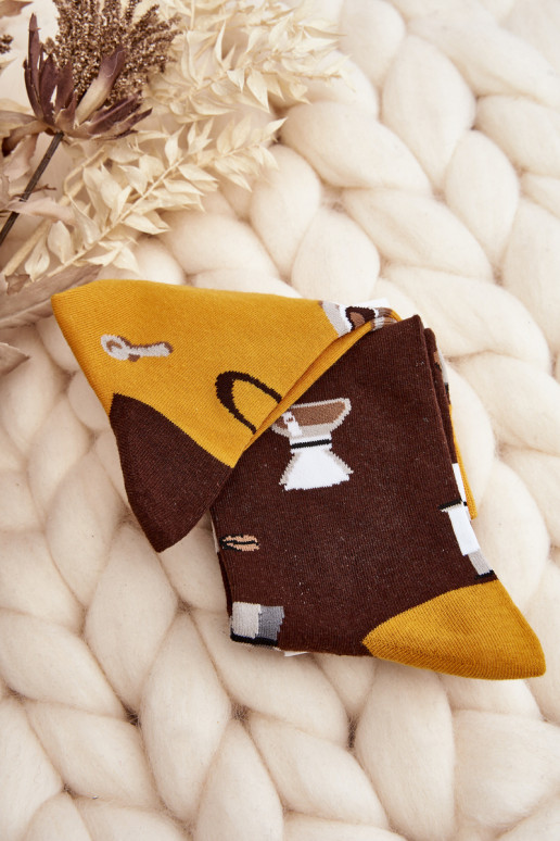 Nederančios vyriškos kojinės, kavos, rudos ir geltonos spalvos