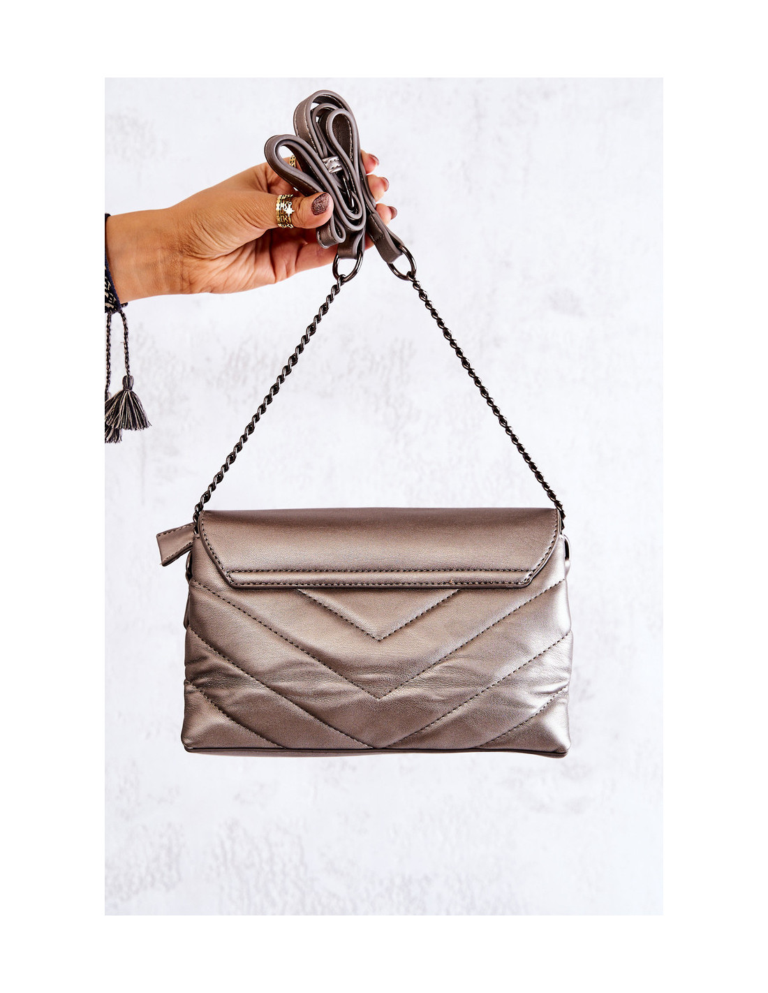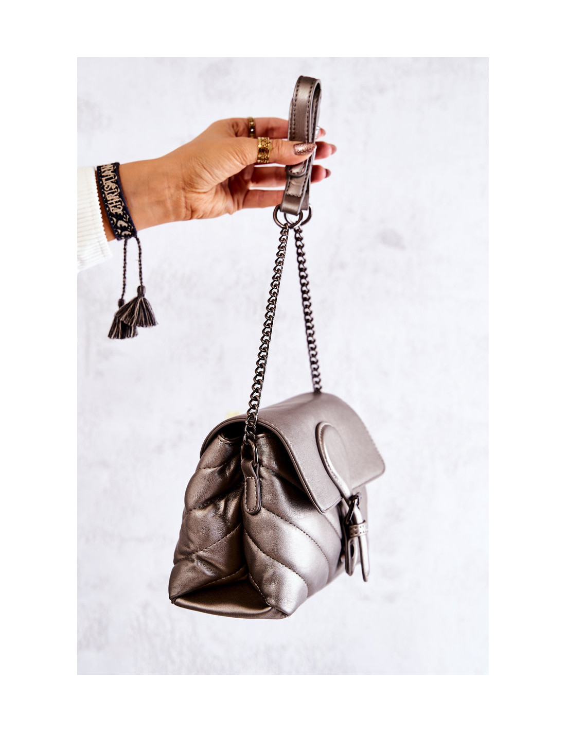 Madingas dygsniuotas krepšys, pagamintas iš ekologiškos odos. Krepšio atvartas užsegamas magnetu su dekoratyvine sagtimi. Užsegami skyriai. Viduje viena atvira ir viena užsegama kišenė. Krepšyje yra reguliuojamas dirželis, pagamintas iš metalinės grandinės ir tos pačios spalvos eko odos. Būtinai peržiūrėkite visą mūsų rankinių kolekciją!