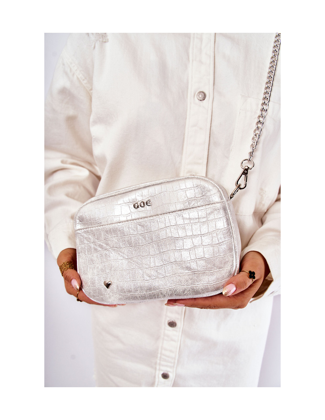 Madinga GOE rankinė pagaminta iš aukštos kokybės ekologiškos odos. Priekyje yra GOE prekės ženklo logotipas, širdies emblema ir atvira kišenė. Krepšys turi vieną skyrių, užsegamą užtrauktuku. Viduje yra viena atvira kišenė, viena užsegama užtrauktuku. Pamušalas iš audinio su dekoratyviniu raštu. Be to, krepšyje yra reguliuojamas, nuimamas dirželis.