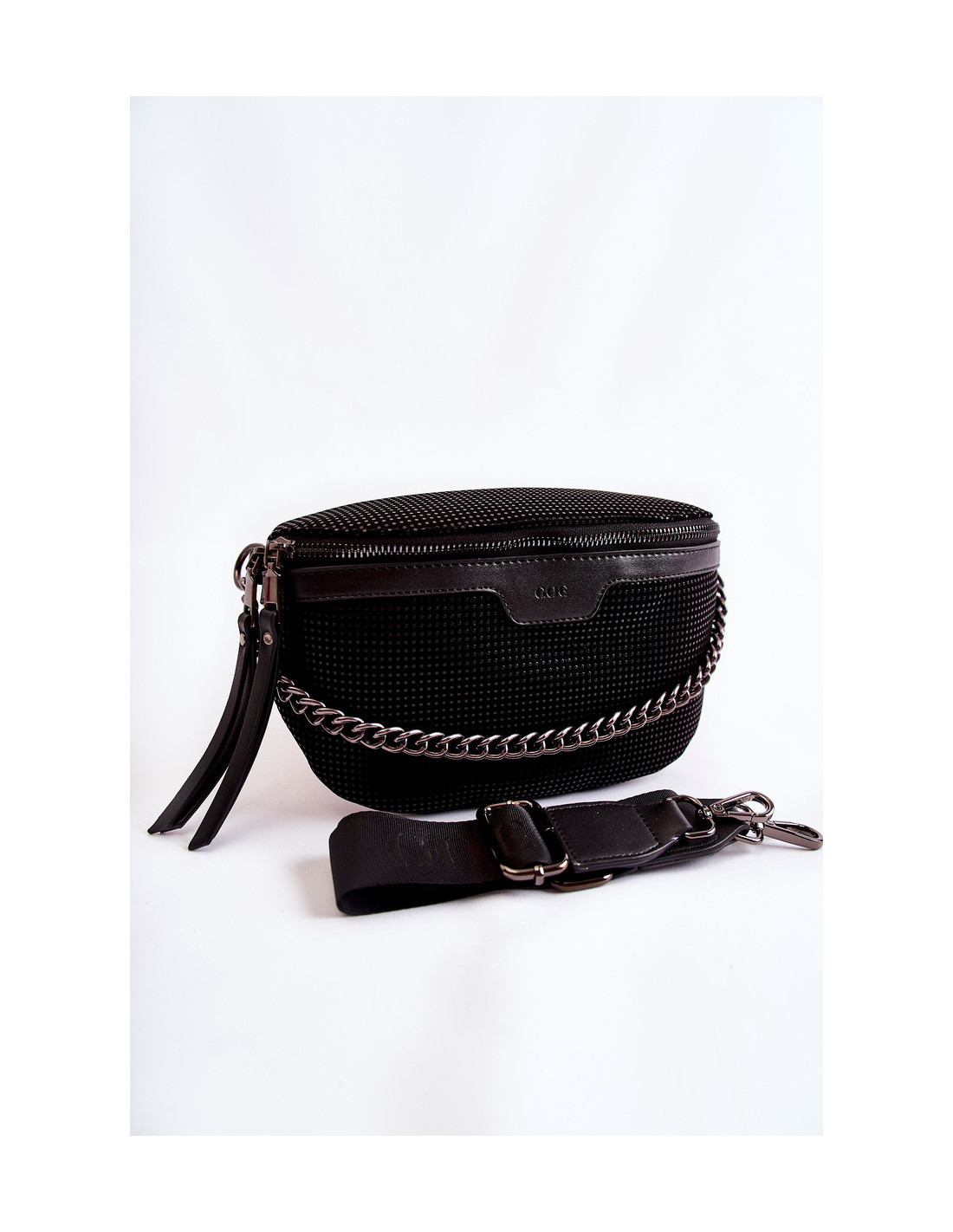 GOE moteriška rankinė pagaminta iš aukštos kokybės medžiagos. Priekyje yra GOE prekės ženklo logotipas. Krepšys turi vieną skyrių, užsegamą užtrauktuku. Viduryje viena kišenė užsegama užtrauktuku. Krepšys turi dekoratyvinę, nenuimamą grandinėlę. Pamušalas iš audinio su dekoratyviniu raštu. Be to, krepšyje yra reguliuojamas, nuimamas dirželis.