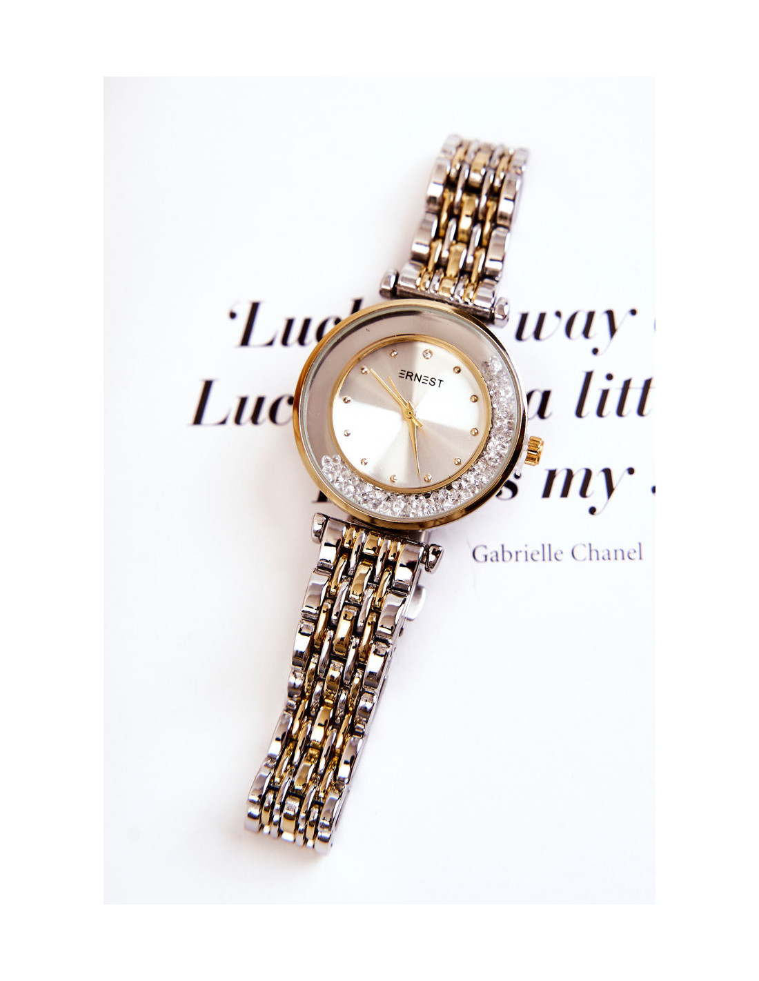 Moteriškas laikrodis ant apyrankės su kubiniu cirkoniu ERNEST sidabru ir auksu