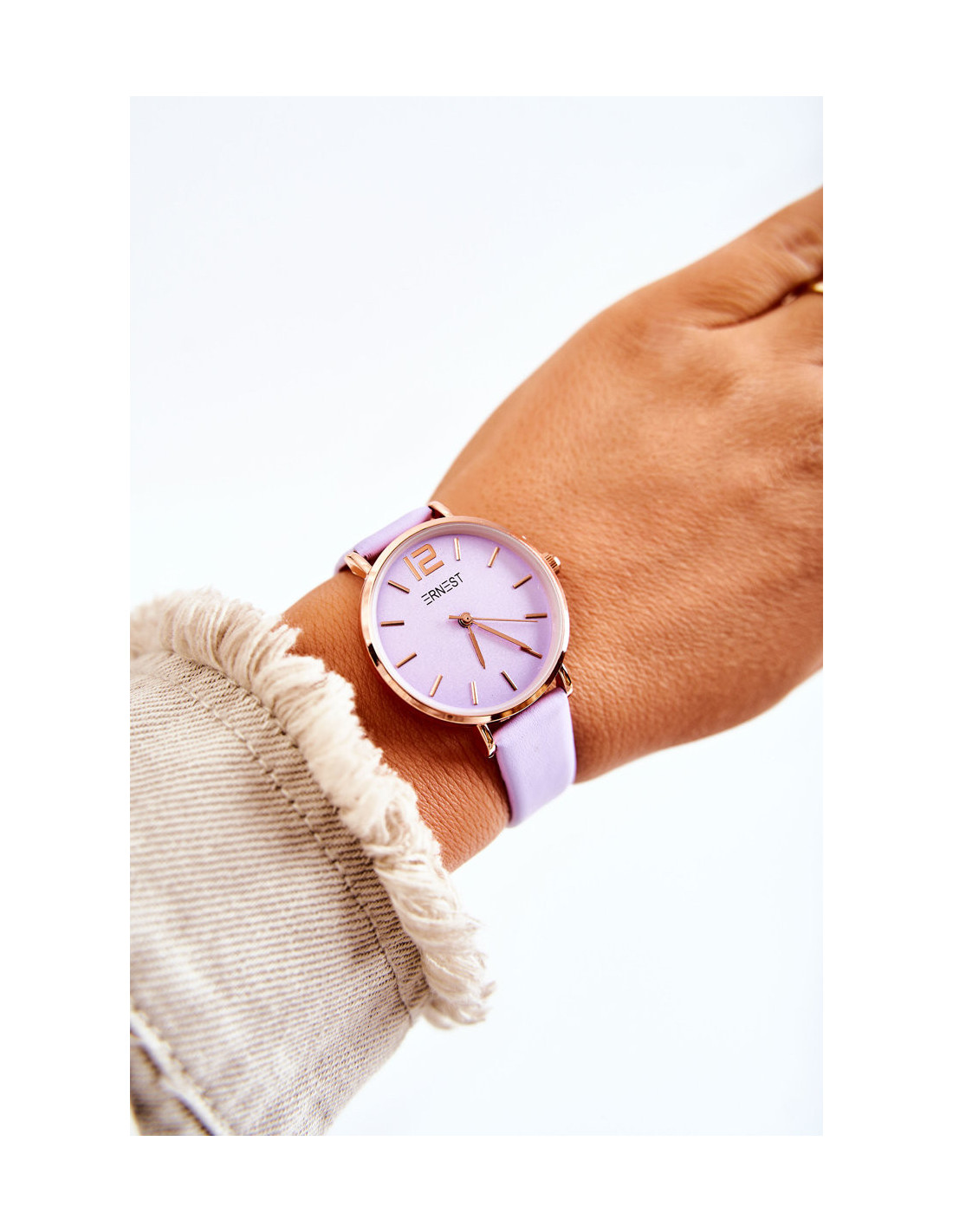 Laikrodis ant odinio dirželio Be nikelio ERNEST Šviesiai violetinė