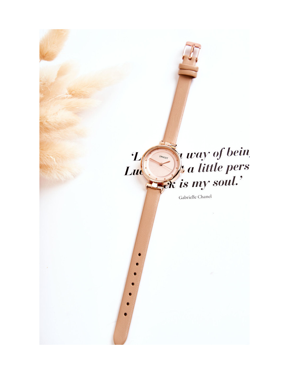 Moteriškas laikrodis Ernest – tai modelis kiekvienai moteriai, mėgstančiai madingus aksesuarus! Laikrodis puikiai tinka kasdieniam naudojimui. Turi reguliuojamą dirželį, pagamintą iš ekologiškos odos. Užsegama sagtimi. Ciferblatas yra tokios pat spalvos kaip ir laikrodžio dirželis. Pagaminta iš nerūdijančio plieno. Jame nėra nikelio. Jūs tikrai turėtumėte tai turėti!