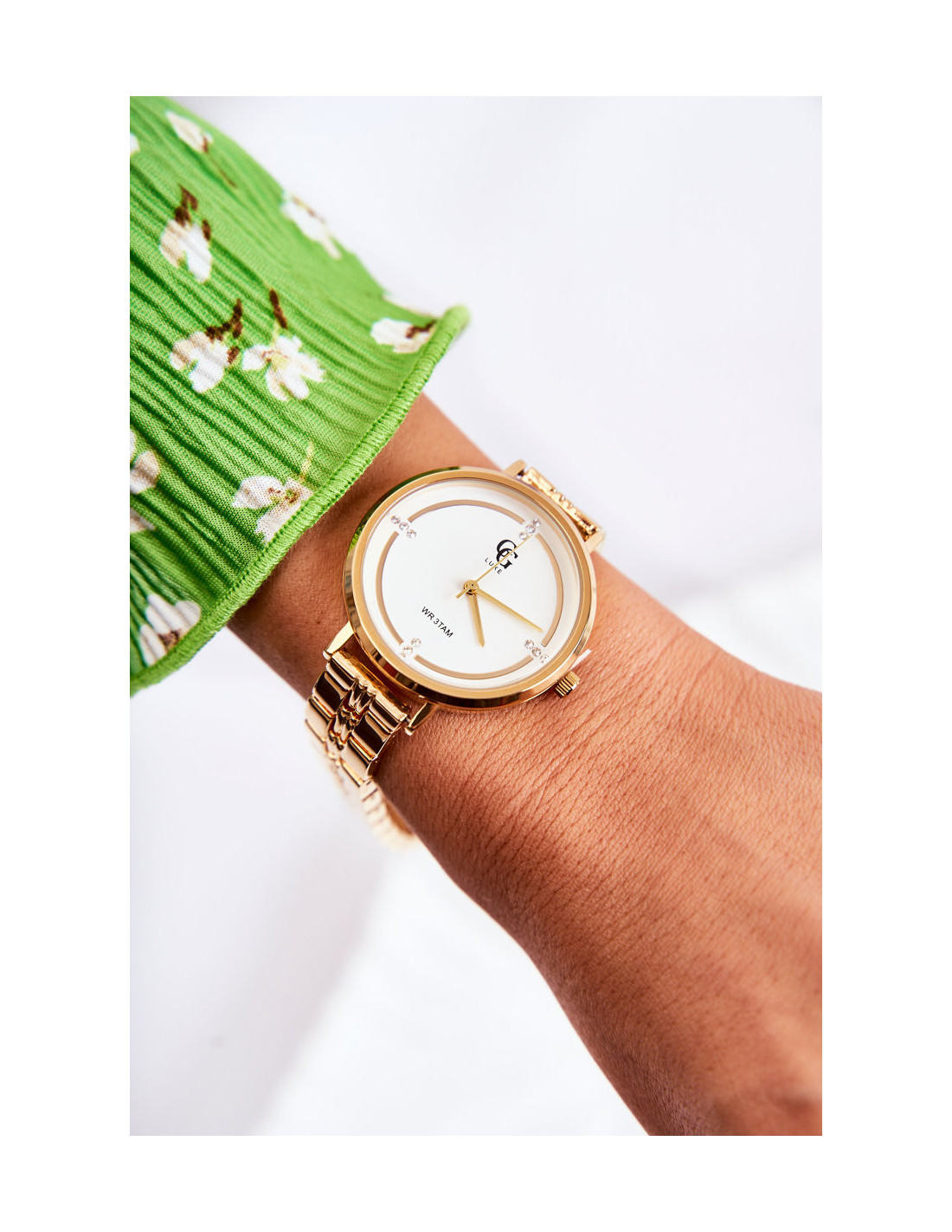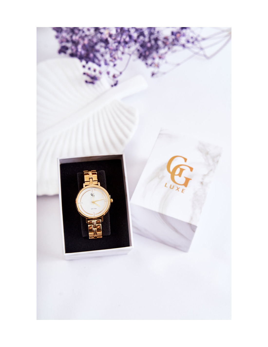 Šis GG Luxe laikrodžio modelis turi originalią nerūdijančio plieno apyrankę. Apvalus ir įskaitomas skydas. Šis laikrodis tiks ir mažiems riešams. WR30M atsparumas vandeniui užtikrina saugumą atsitiktinai aptaškius laikrodį, pvz., plaunant rankas.