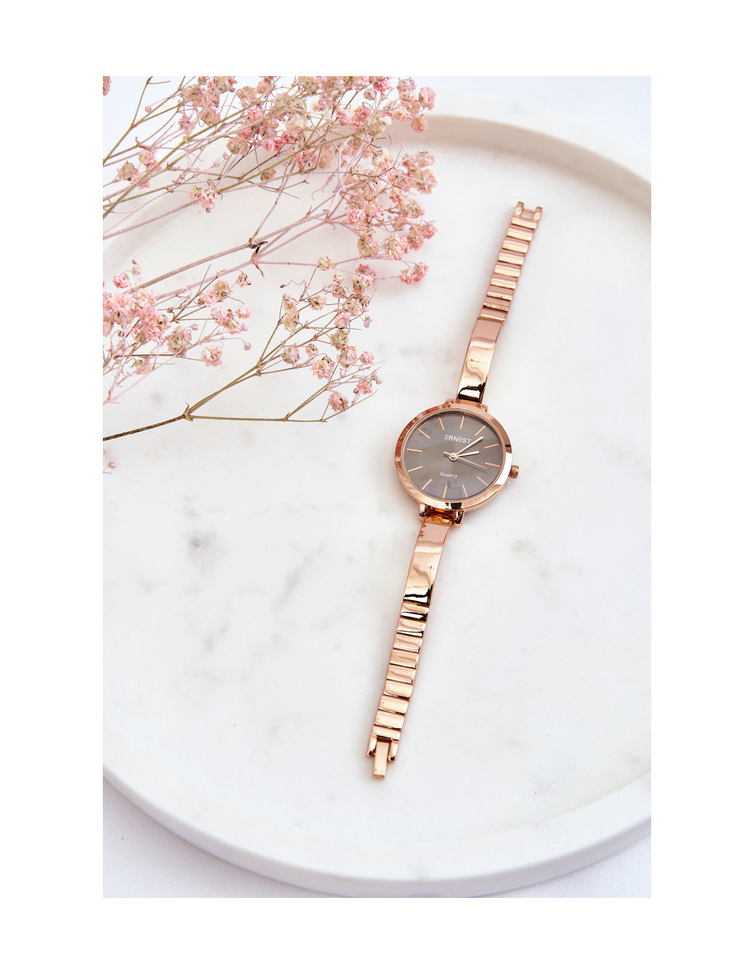Laikrodis su juodu ciferblatu ant apyrankės ERNEST Rose Gold