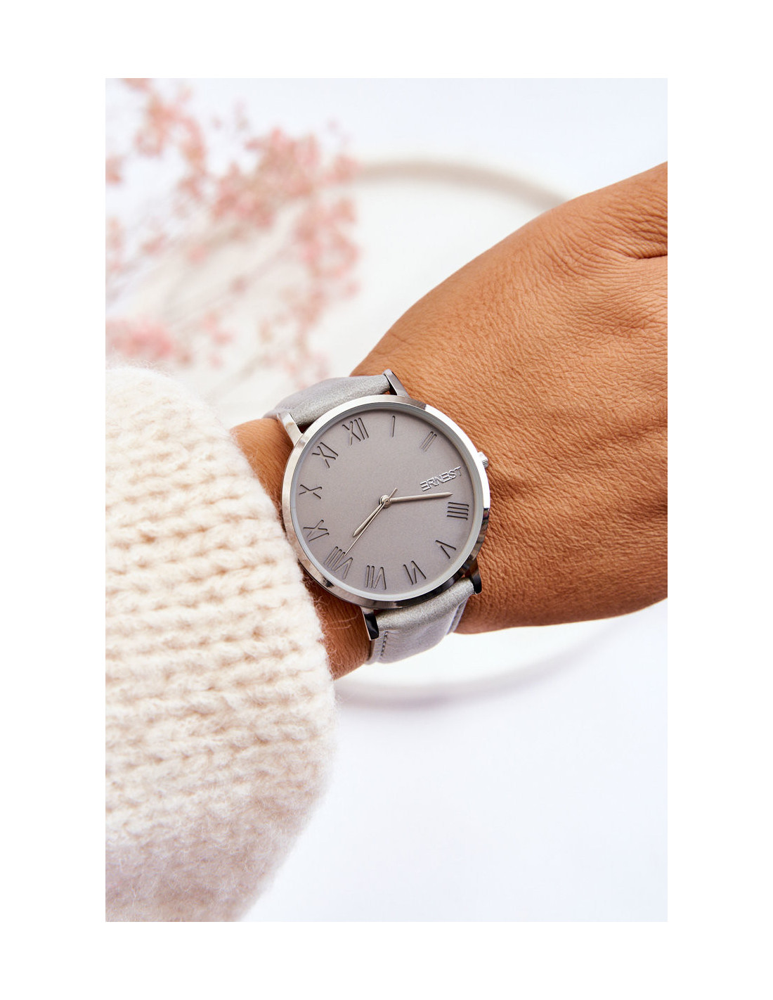 Moteriškas laikrodis su analoginiu dirželiu ERNEST pilkas