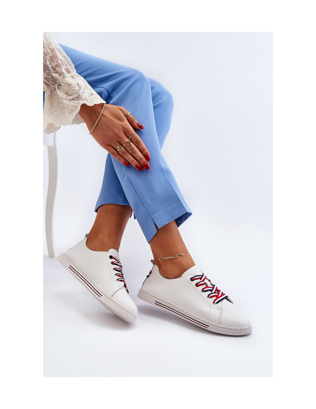 Moteriški sportbačiai iš natūralios odos. Jų klasikinis dizainas leidžia lengvai prisitaikyti prie įvairių stilių, o raišteliai užtikrina patikimą pėdos laikymą. Šis modelis turi neslidų padą, todėl yra saugus ant įvairių tipų paviršių. Klasikinio stiliaus, kuris tiks tiek prie kelnių, tiek prie suknelės, tiek prie sijono. Renkantis dydį, vadovaukitės dydžių lentele.