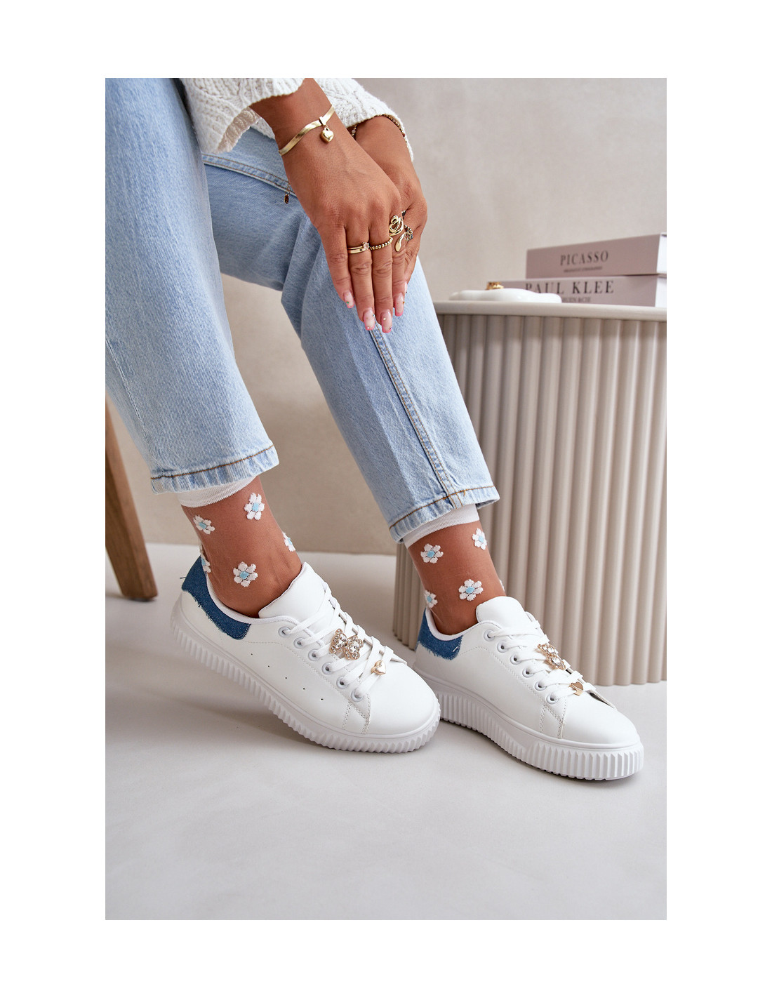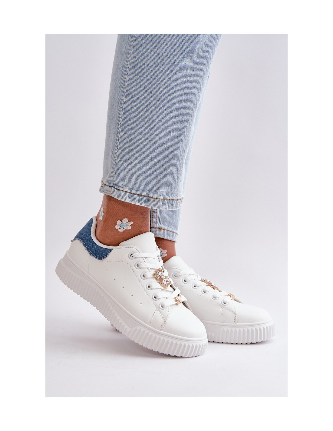Žemi eko odos sportbačiai su baltais ir mėlynais Cillione segtukais