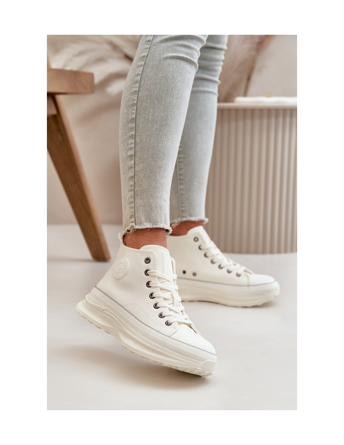 Moteriški sportbačiai iš prekės ženklo Big Star. Pagaminta iš aukštos kokybės PU medžiagos, kuri primena natūralią odą. Sumontuota ant masyvios platformos, kuri ne tik prideda kelis centimetrus aukščio, bet ir užtikrina išskirtinį dėvėjimo komfortą visą dieną. Klasikiniai raišteliai ir suapvalintas pirštas suteikia nesenstančią išvaizdą. Prekės ženklo logotipas viršutinės dalies šone. Renkantis dydį, vadovaukitės dydžių lentele.