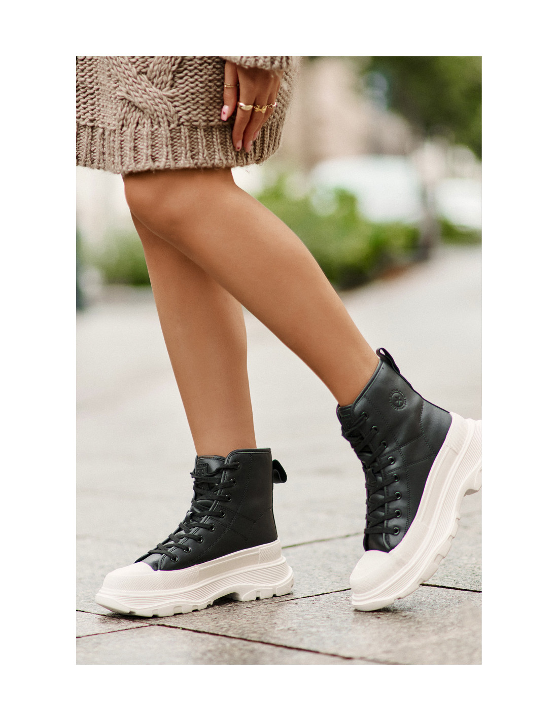 Natūralios odos sportbačiai iš Big Star yra madingas pasirinkimas šaltesnėms dienoms. Jie išsiskiria masyvia platforma, kuri suteikia charakterio ir šiuolaikiškumo. Suvarstyti, kad geriau priglustų, o vidus išklotas maloniu avikailio audiniu užtikrina šilumą ir komfortą. Puikiai tinka kasdieniam, kasdieniniam stiliui. Renkantis dydį, vadovaukitės dydžių lentele.