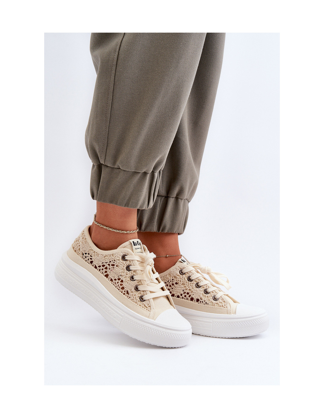 Moteriški „Lee Cooper“ prekės ženklo sportbačiai su nėrinių viršumi. Pagaminta iš tekstilės medžiagos. Nustatykite ant storo pado. Klasikinis nėriniuotas modelis. Būtinai peržiūrėkite kitą mūsų pasiūlyme esančią Lee Cooper avalynę! Renkantis dydį, vadovaukitės žemiau esančia dydžių lentele.