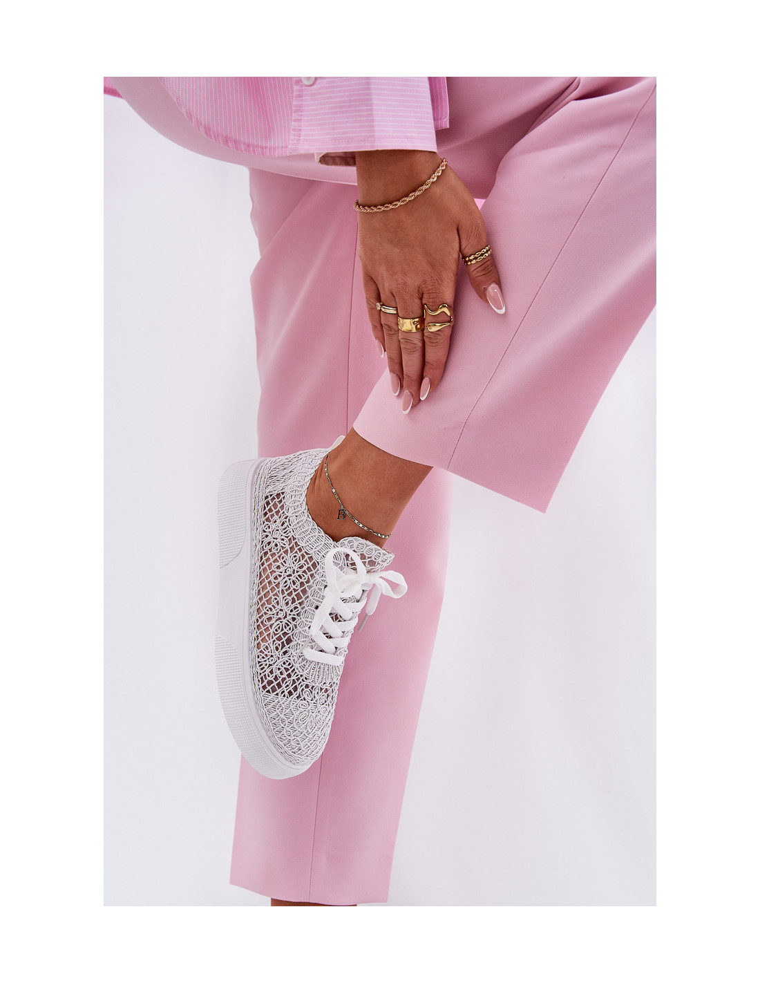 Stilingi moteriški sportbačiai su ažūriniu raštu per visą viršutinę dalį. Batų pirštai suapvalinti, o tai užtikrina patogumą ir komfortą vaikštant. Padas iš gumos garantuoja stabilumą ir ilgaamžiškumą, kartu suteikia lankstumo ir pakankamą sukibimą. Šie sportbačiai puikiai tiks šiltoms dienoms – puikiai papildys jūsų kasdienį stilių. Renkantis dydį, vadovaukitės dydžių lentele.
