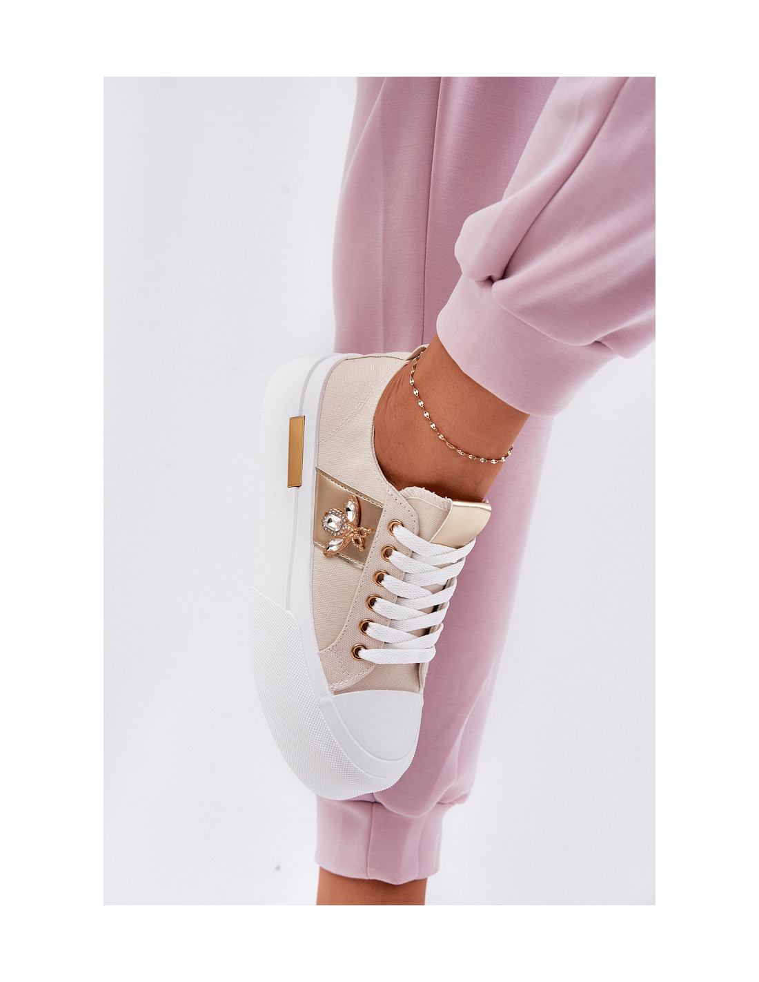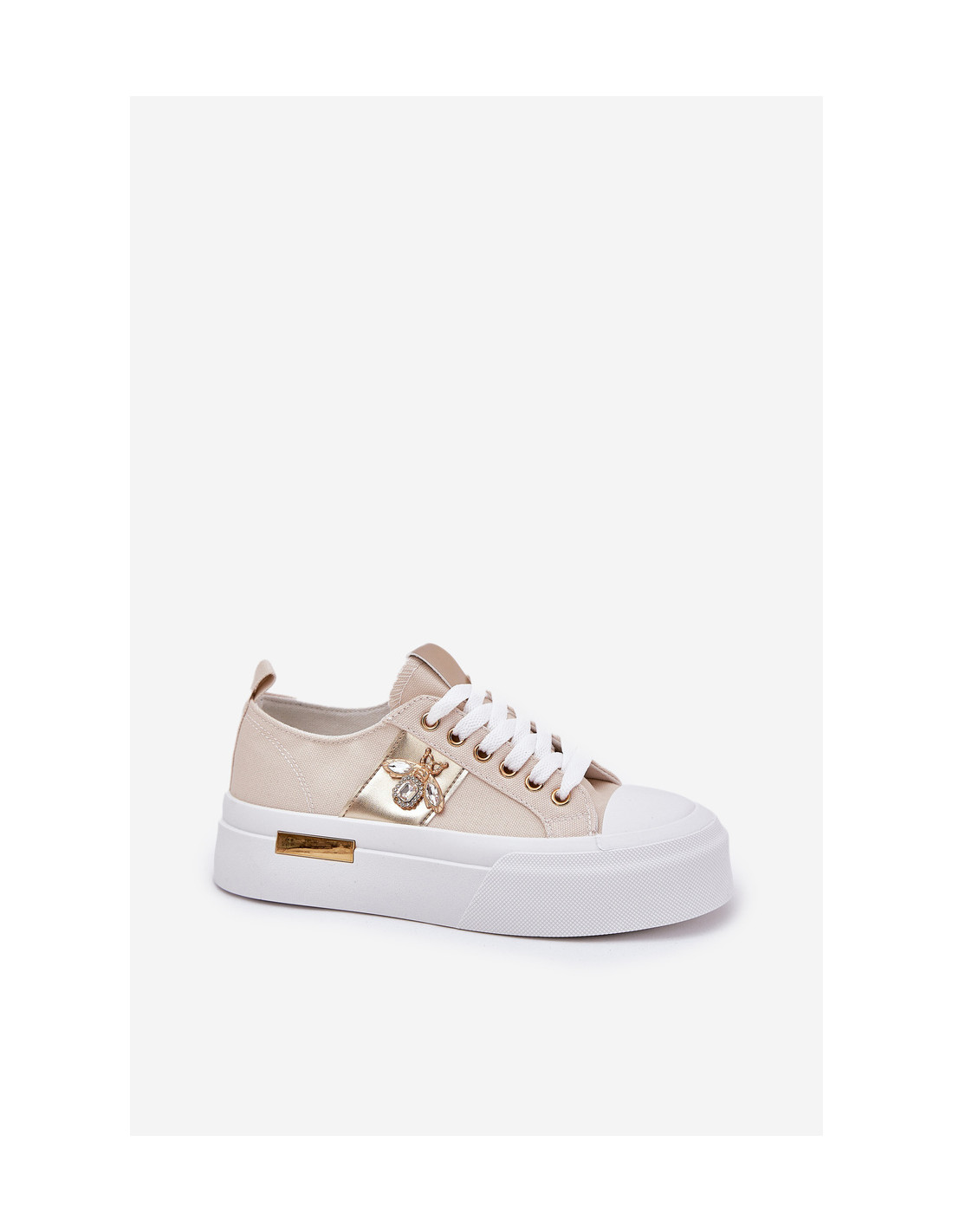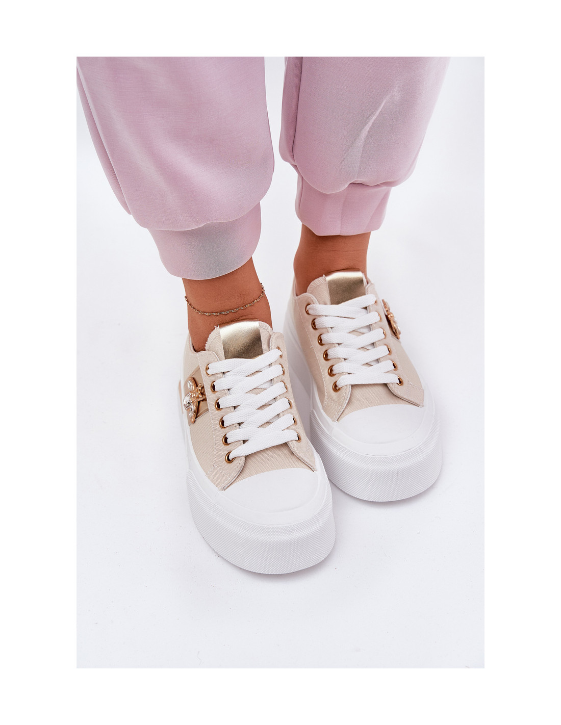 Stilingi moteriški sportbačiai iš tekstilės medžiagos. Įrengtas ant didžiulės platformos, kuri suteikia madingo charakterio. Suapvalintas pirštas suteikia komfortą ir judėjimo laisvę, o dekoratyvi detalė viršutinės dalies šone suteikia unikalaus stiliaus. Minkštas putplasčio vidpadis garantuoja komfortą visą dieną, suteikdamas tinkamą amortizaciją kiekviename žingsnyje. Puikiai tinka kasdieniam stiliui. Renkantis dydį, vadovaukitės dydžių lentele.