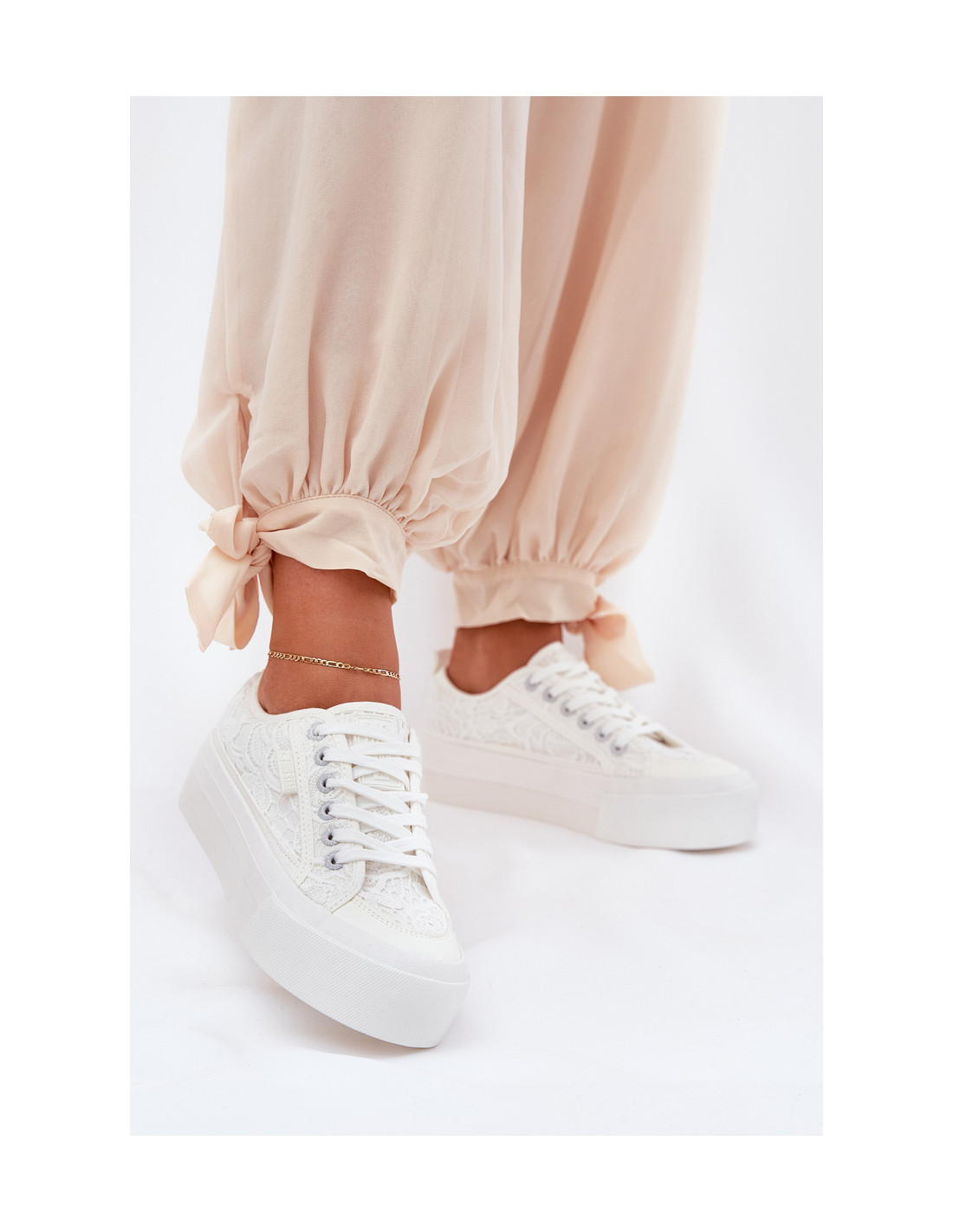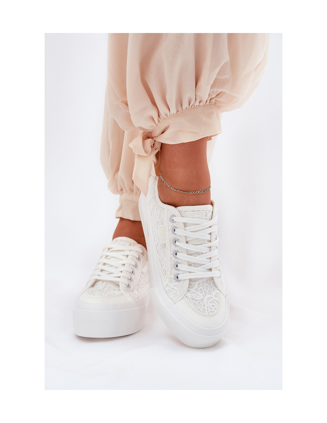 „Big Star“ prekės ženklo sportbačiai, kurie išsiskiria nėrinių viršumi, suteikiančiu lengvą ir mergaitišką charakterį. Ant didžiulės platformos jie suteikia komfortą ir stabilumą, tuo pačiu pabrėžiant šiuolaikišką išvaizdą. Suapvalinti pirštai užtikrina komfortą visą dieną. Šie sportbačiai bus puikus pasirinkimas kasdieniniam stiliui, derins komfortą ir madingą išvaizdą. Renkantis dydį, vadovaukitės žemiau esančia dydžių lentele.