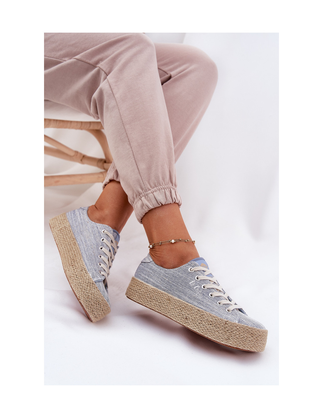 Lee Cooper LCW-25-02-3283 moteriški sportbačiai su platforma ir pynėmis, mėlyni