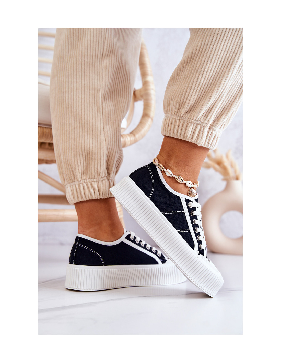 Madingi sportbačiai ant masyvios guminės platformos. Batai turi medžiaginius batviršius ir neslidų padą. Puikus modelis, tiks daugeliui stilių! Pirštas sutvirtintas guma. Sportbačiai turi klasikinį įrišimą. Būtinai peržiūrėkite visą mūsų sportbačių kolekciją! Renkantis dydį, naudokite dydžių lentelę.