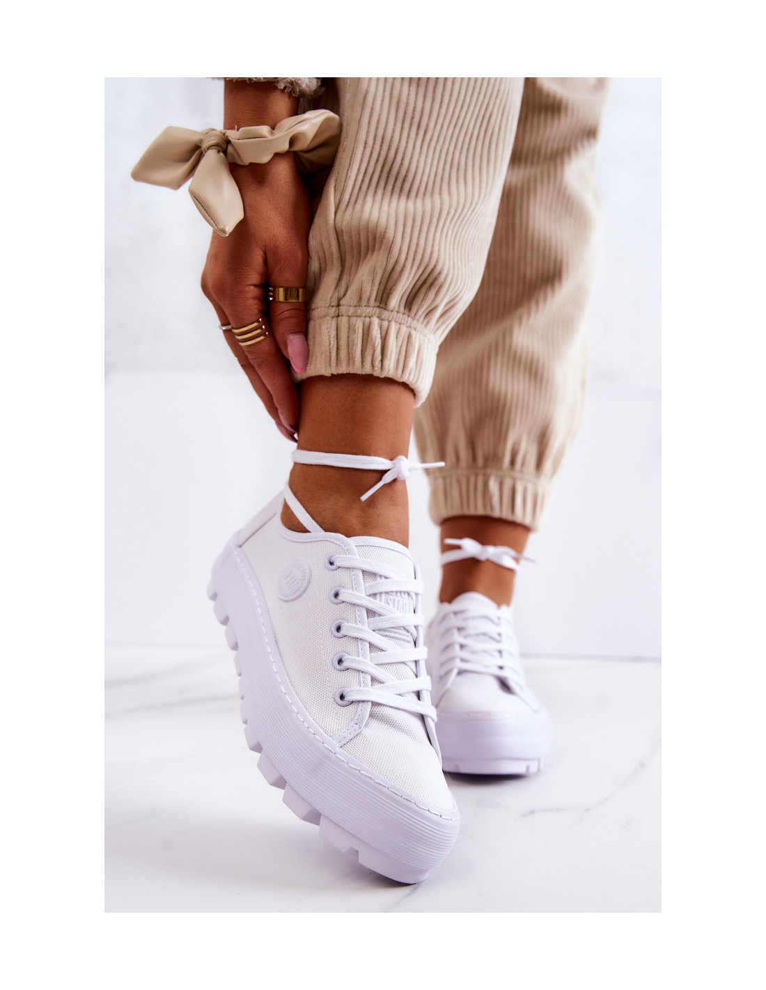 Ikoniški Big Star sportbačiai ant didžiulės platformos? Taip, tai įmanoma! Batai pagaminti iš audinio, padengto subtiliu tinkleliu. Big Star logotipas yra šone ir liežuvyje. Klasikinis surištas modelis. Platforma ant storo pado puikiai izoliuos nuo šaltos žemės ir užtikrins stabilumą ant nelygaus paviršiaus. Renkantis dydį, naudokite dydžių lentelę.