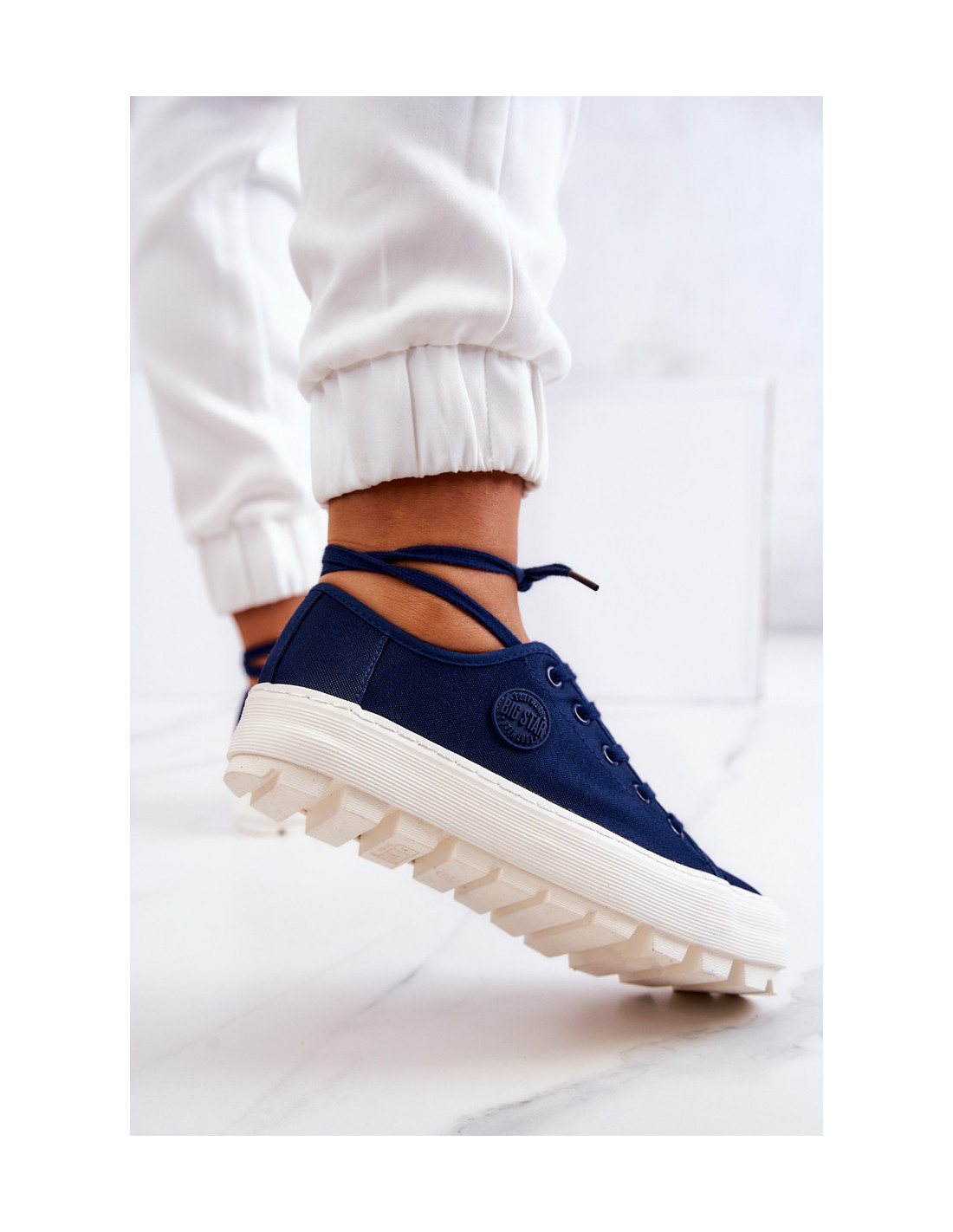 Ikoniški Big Star sportbačiai ant didžiulės platformos? Taip, tai įmanoma! Batai pagaminti iš audinio, padengto subtiliu tinkleliu. Big Star logotipas yra šone ir liežuvyje. Klasikinis surištas modelis. Platforma ant storo pado puikiai izoliuos nuo šaltos žemės ir užtikrins stabilumą ant nelygaus paviršiaus. Renkantis dydį, naudokite dydžių lentelę.