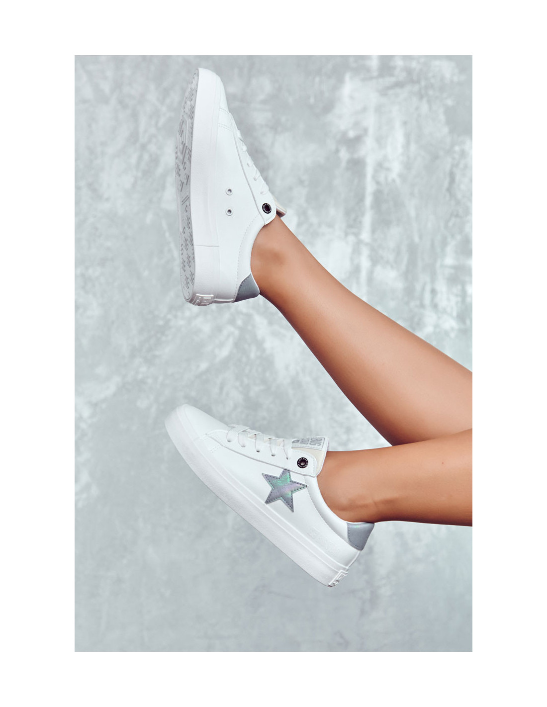 Big Star sportbačiai, pagaminti iš patvarios ekologiškos odos. Viršutinės dalies šone įsiūta žvilganti žvaigždė. Batų padas pagamintas iš kokybiškos guminės medžiagos, kuri užtikrins kokybišką naudojimą. Surišimas neleis slysti ir leis tinkamai priglusti prie pėdos. Madingi ir patogūs. Šis modelis puikiai tiks kasdieniniam apsipirkimui ar pasivaikščiojimui. Batai turi vidpadį, pagamintą iš patvarios ir trinčiai atsparios medžiagos. Renkantis dydį, naudokite dydžių lentelę.