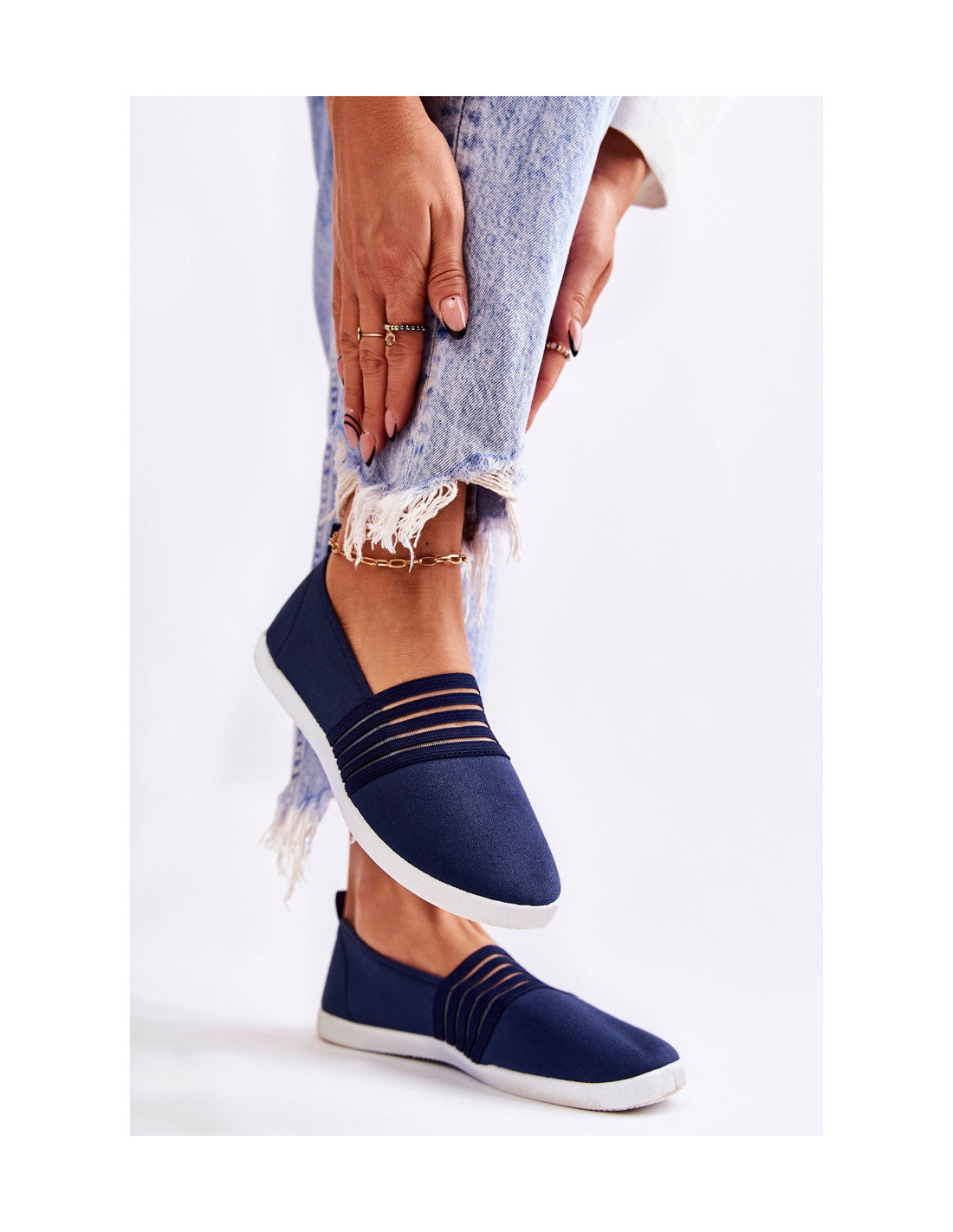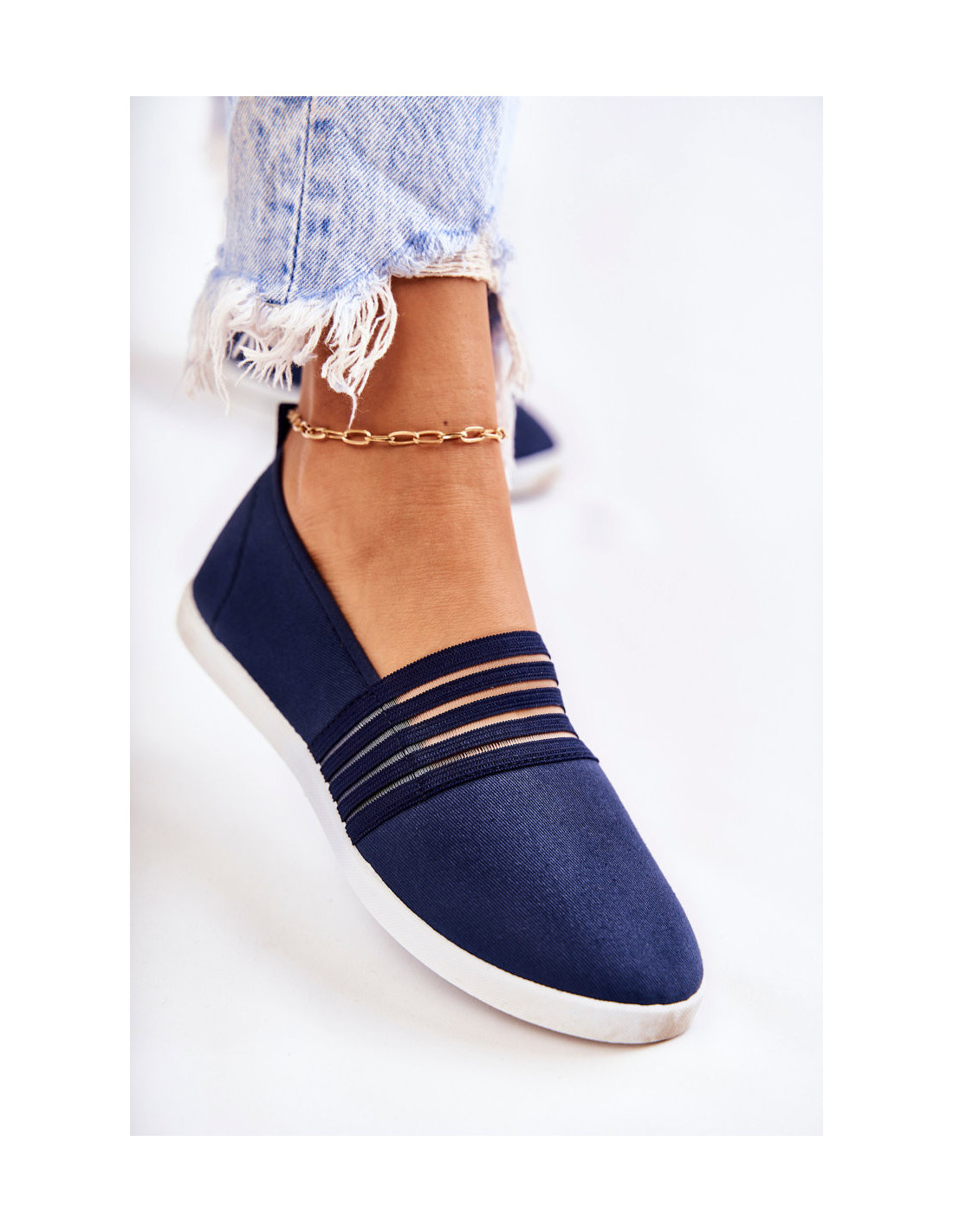 Slip-on sportbačiai su batviršiais virš kulkšnies yra pagaminti iš tekstilės medžiagos. Pastatykite ant subtilios platformos su užapvalintais pirštais. Slip-on modelis. Puikiai tinka kasdieniam naudojimui – darbui, apsipirkimui ar susitikimams su draugais. Patogus ir patogus naudoti. Jie turi medžiaginį įdėklą ir dekoratyvines, permatomas juosteles. PASTABA! Padai šiek tiek purvini. Renkantis dydį, naudokite dydžių lentelę.