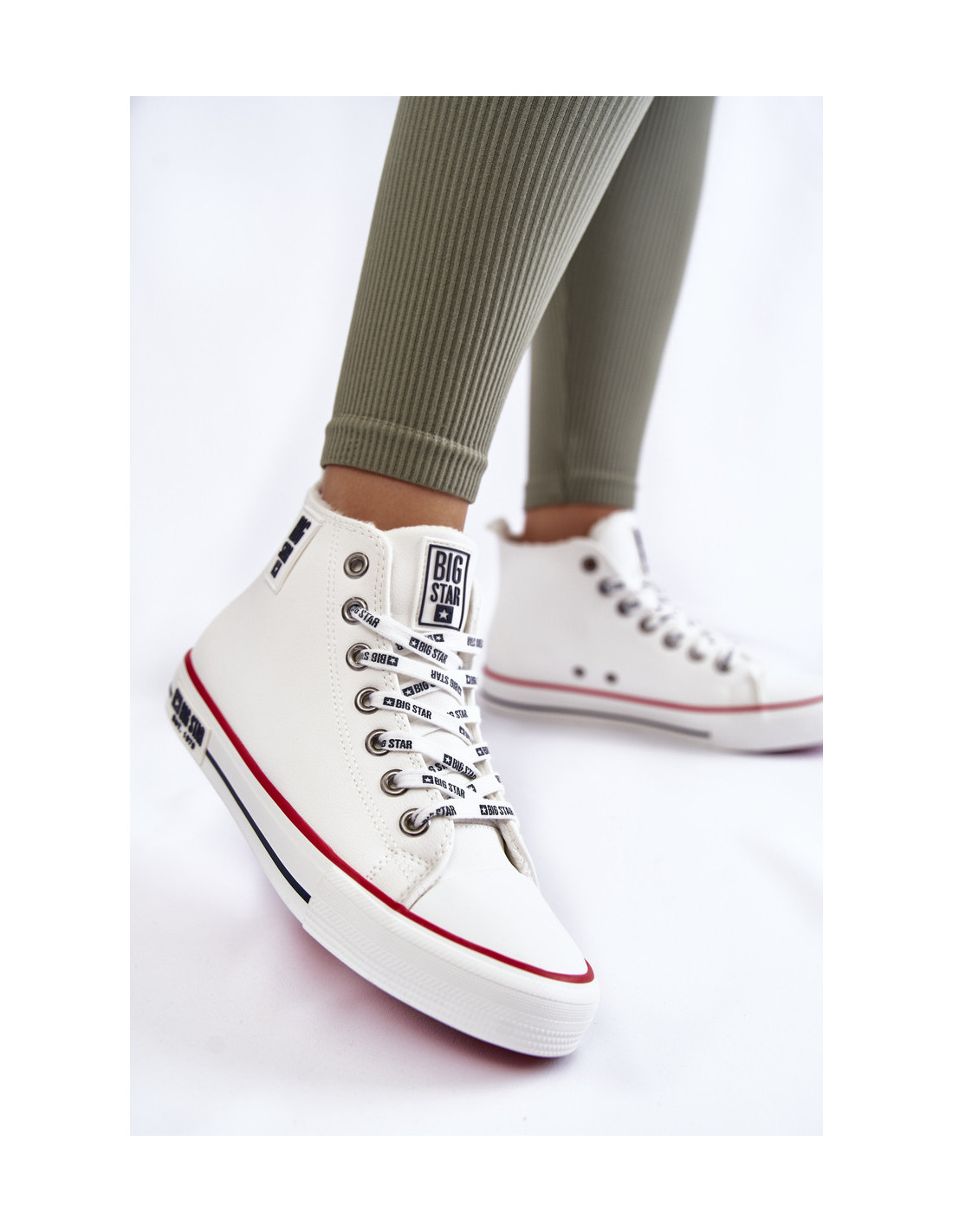 Klasikiniai moteriški sportbačiai iš prekės ženklo Big Star turėtų būti jūsų garderobe! Viršutinė dalis pagaminta iš sintetinių medžiagų, gautų perdirbus. Be to, jie turi V-Label – tarptautinį simbolį, naudojamą vegetarams ir veganams skirtiems produktams ir paslaugoms žymėti. Šis ženklas taip pat garantuoja, kad gaminiuose nėra gyvūninės kilmės ingredientų. Klasikinis suvarstomas modelis su sustiprintu pirštu. Sportbačiai izoliuoti švelniu kailiuku. Nustatomas ant neslystančio pado. Renkantis dydį, naudokite dydžių lentelę.