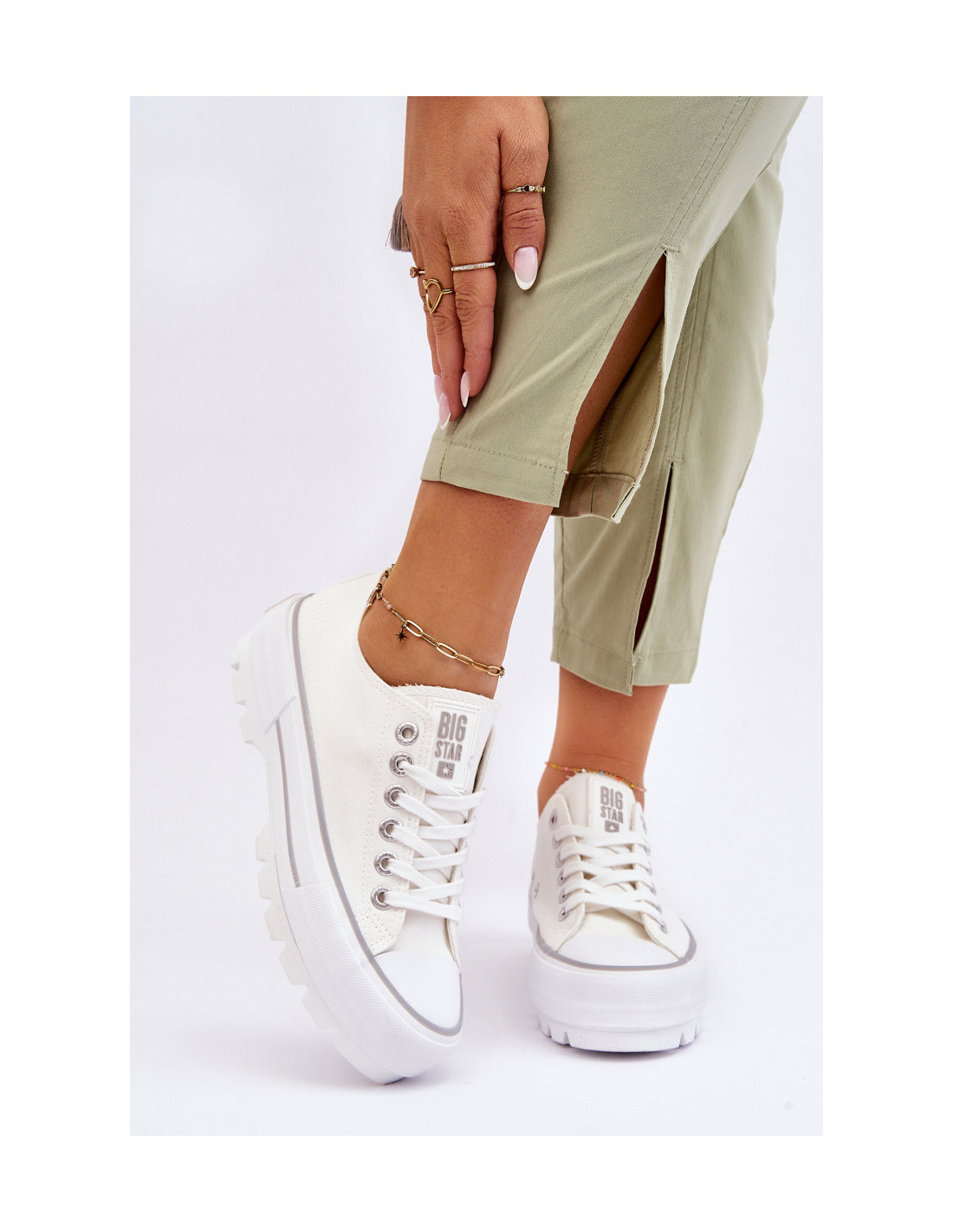 Madingi prekės ženklo „Big Star“ moteriški sportbačiai! Modernus dizainas ir padas su aukštu protektoriumi išskiria šį modelį iš kitų! Viršutinė dalis pagaminta iš tekstilės medžiagos. Šie sportbačiai taip pat turi šiek tiek standesnį kulno skaitiklį. Platforma ir padas pagaminti iš guminės medžiagos. Rinkdamiesi dydį žiūrėkite dydžių lentelę.