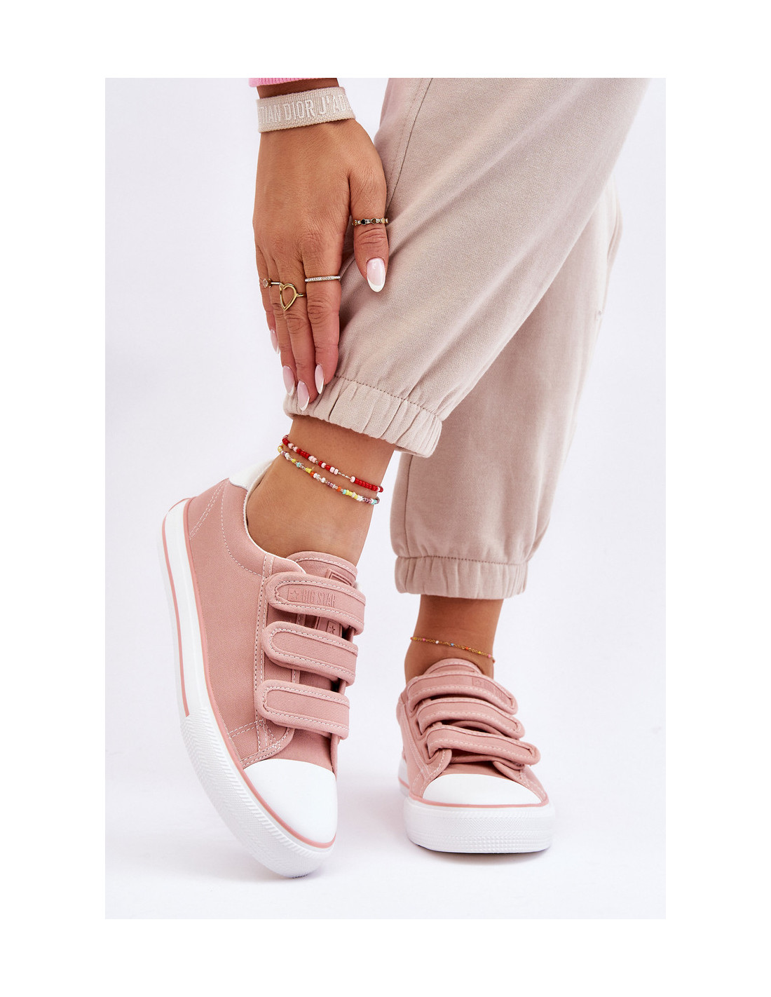 Klasikinio modelio moteriški sportbačiai su Velcro užsegimu. Šis modelis turi minkšto audinio įdėklą, kuris suteikia komforto naudojimo metu. Sportbačiai pagaminti iš tekstilės medžiagos. Sportbačiai pastatyti ant platformos su neslystančiu guminiu padu. Puikus kasdieninis modelis, kurį turėtumėte turėti savo garderobe! Rinkdamiesi dydį žiūrėkite dydžių lentelę.