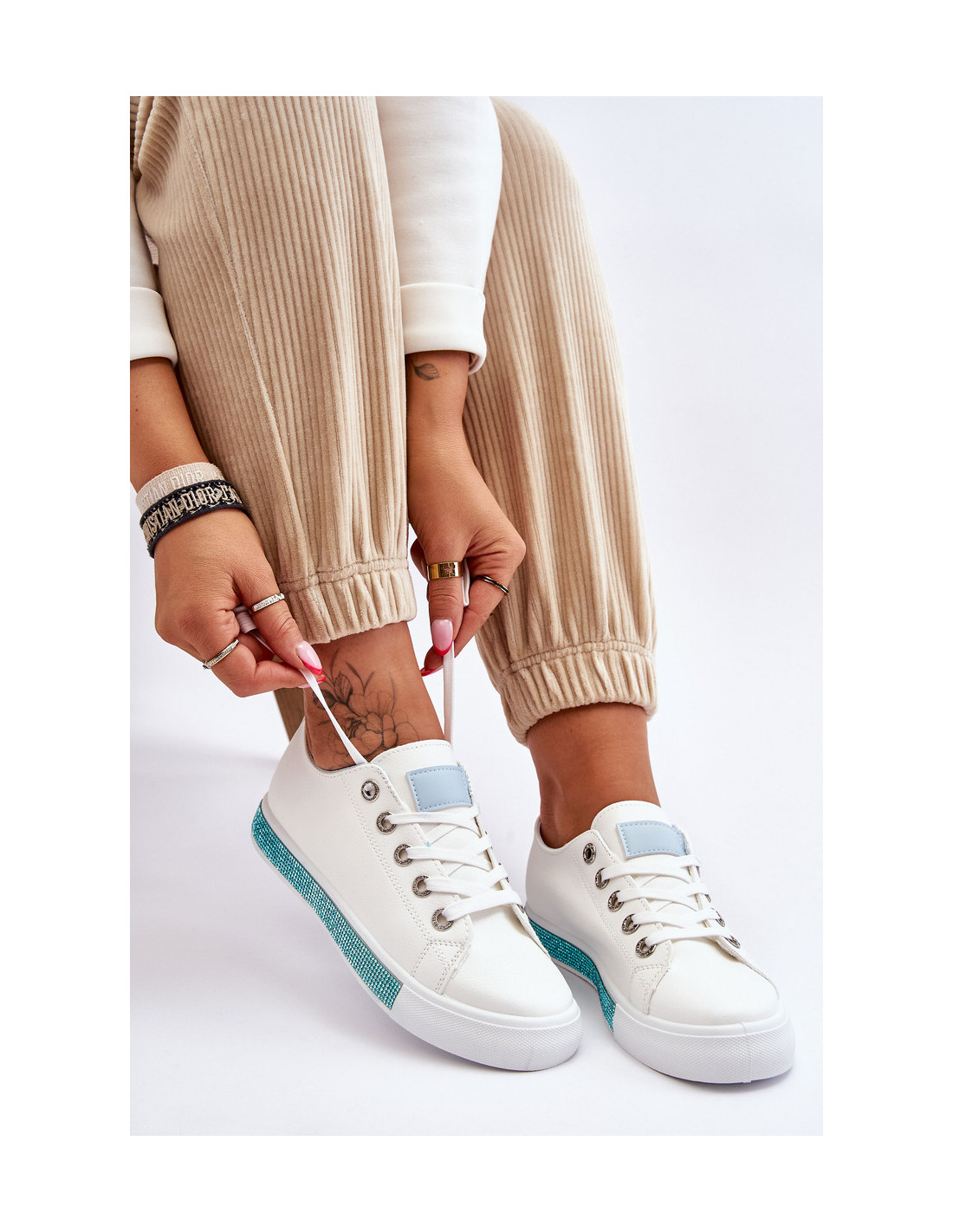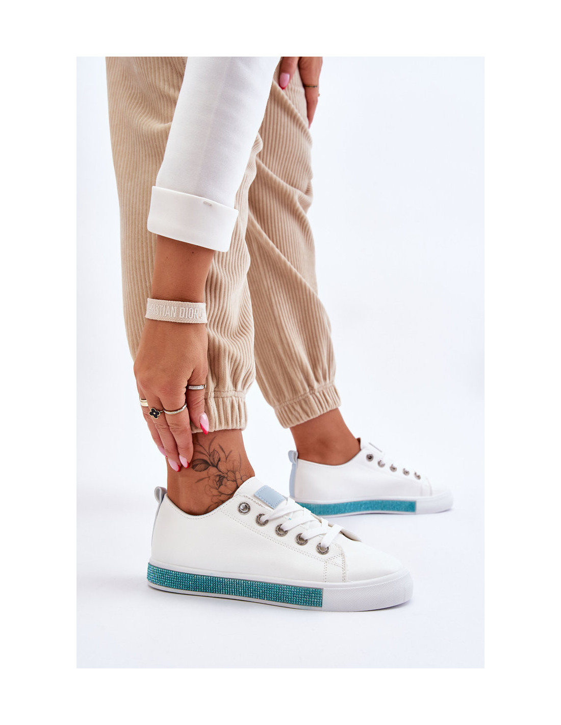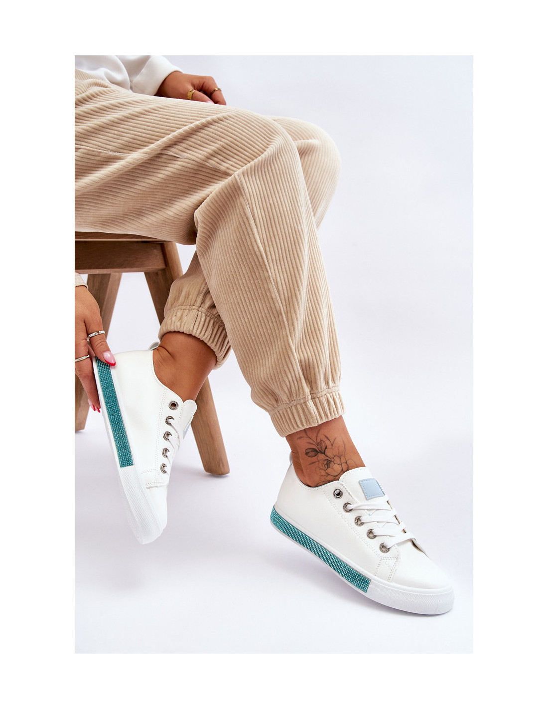 Žemi sportbačiai yra nesenstantis modelis, todėl turėtumėte juos turėti savo garderobe! Su jais galite sukurti daug įdomių stilių. Jie tinka tiek prie džinsų, tiek prie erdvių suknelių. Pagaminta iš eko odos su madingomis dekoracijomis ant platformos kalnų krištolų pavidalu, imituojančių kalnų krištolą. Jie turi minkštą įdėklą, kurį galima išimti. Rinkdamiesi dydį žiūrėkite dydžių lentelę.
