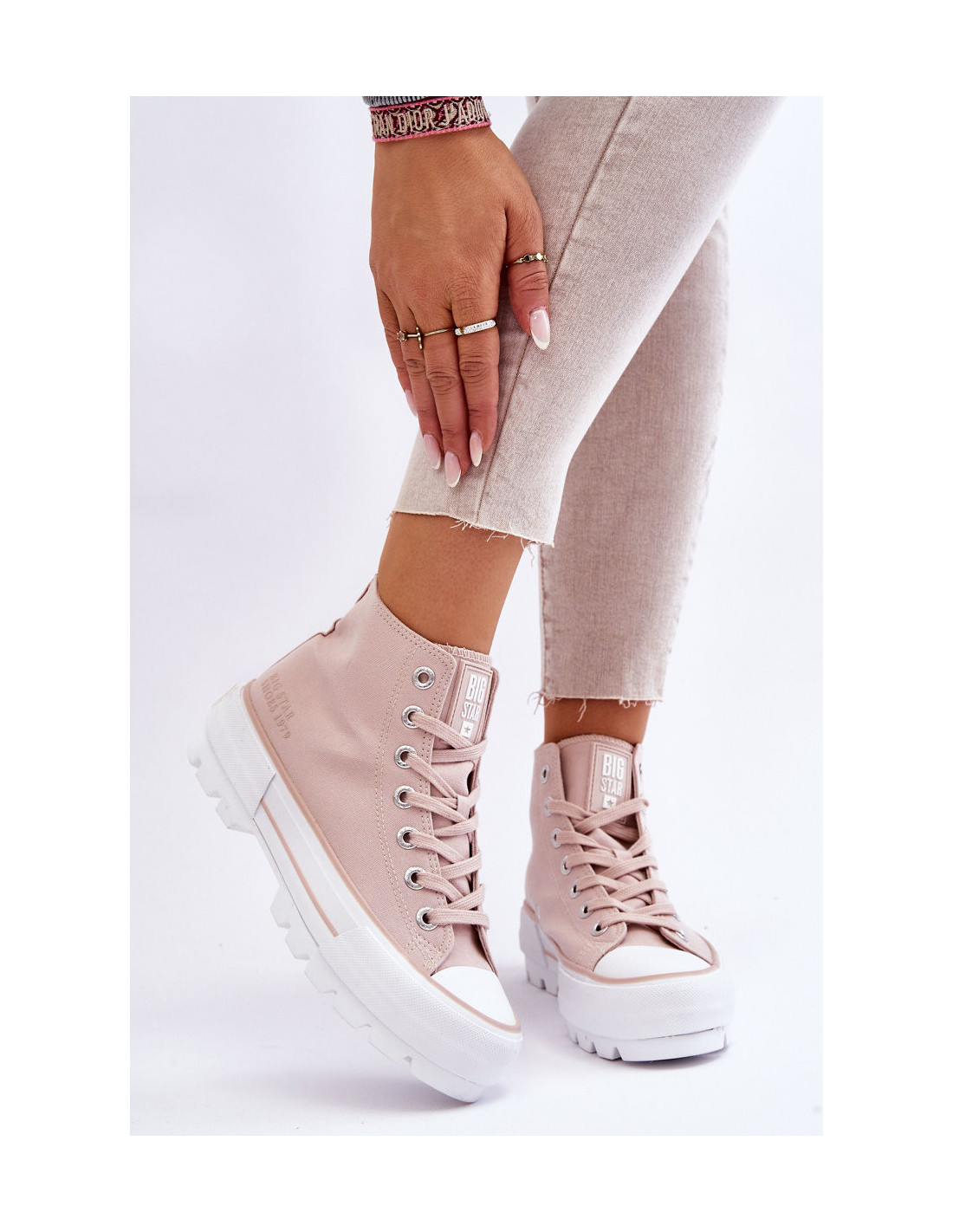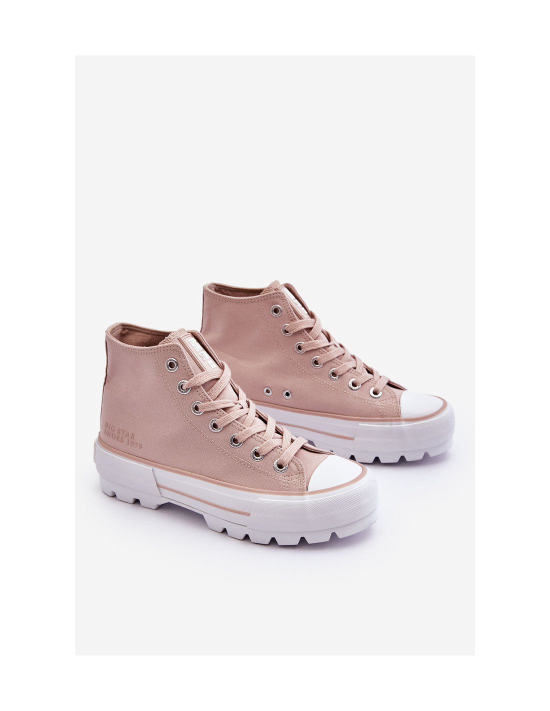 Madingi, aukšti moteriški sportbačiai iš prekės ženklo Big Star! Padas su aukštu protektoriumi ir viršutine dalis iš tekstilinės medžiagos kulkšnies. Šie sportbačiai taip pat turi šiek tiek standesnį kulno skaitiklį. Platforma ir padas pagaminti iš guminės medžiagos. Rinkdamiesi dydį žiūrėkite dydžių lentelę.