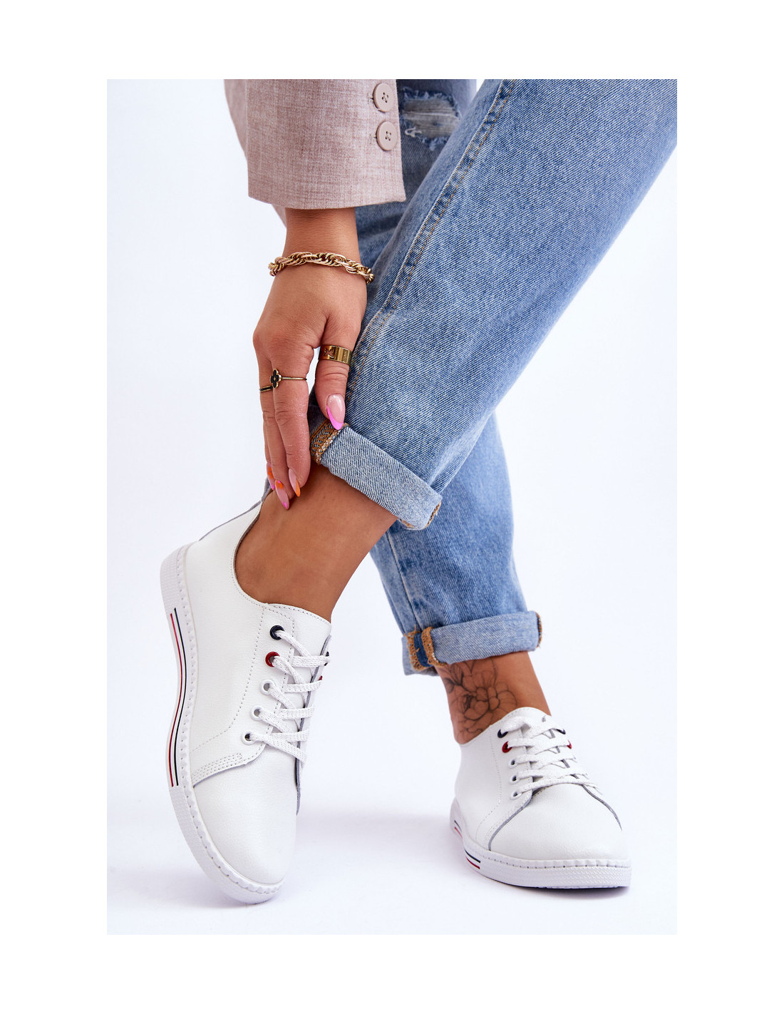 Moteriški žemi sportbačiai pagaminti iš natūralios odos. Modelis turi raištelius su dekoratyviniais siūlais. Sportbačiai turi subtilią platformą su guminiu, neslidžiu padu. „Comfort“ vidpadis taip pat pagamintas iš natūralios odos. Jūs tikrai turėtumėte juos turėti! Rinkdamiesi dydį žiūrėkite dydžių lentelę.