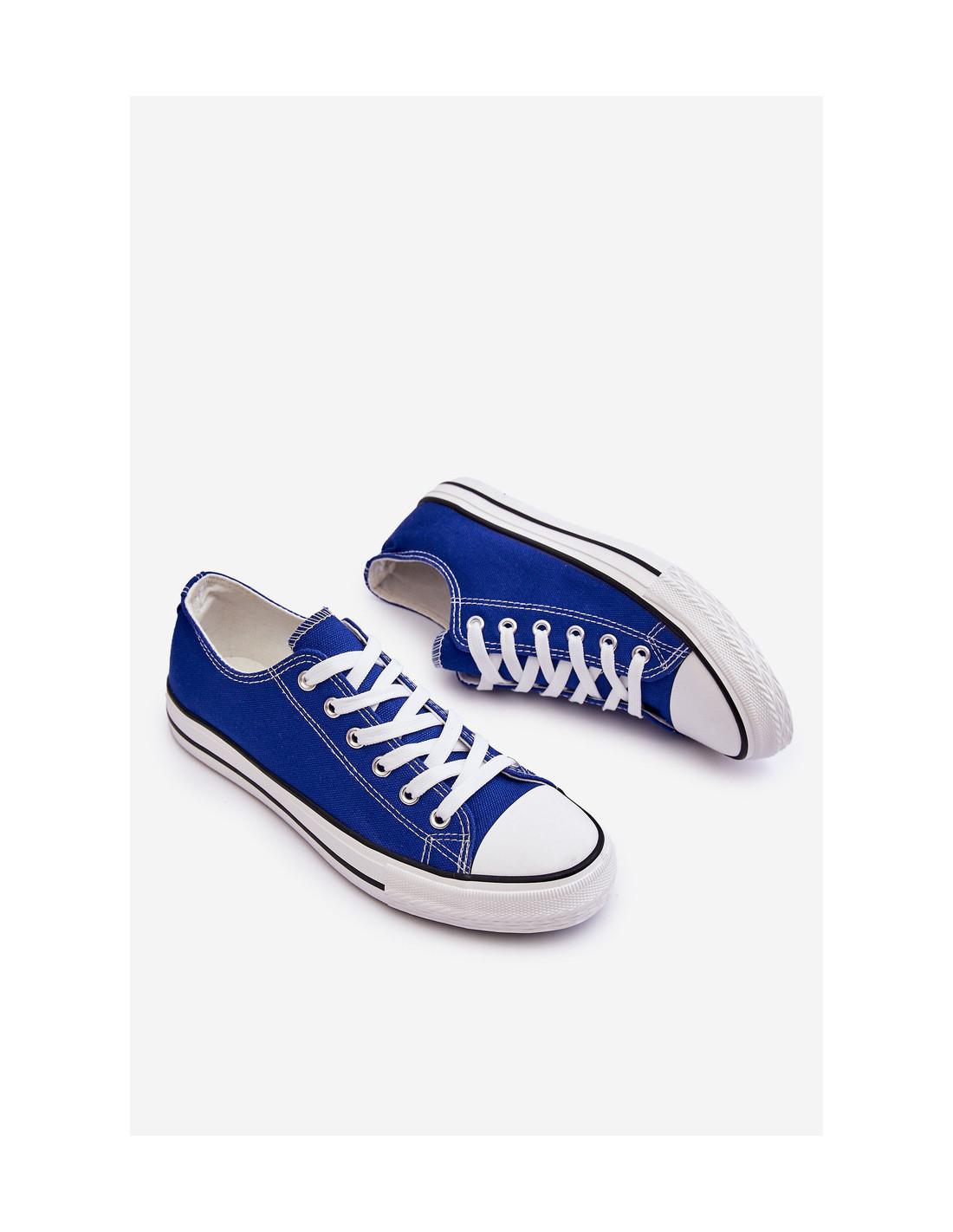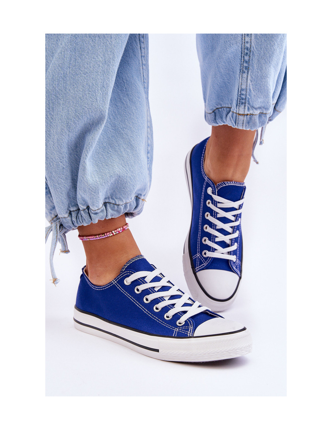 Klasikiniai, suvarstomi moteriški sportbačiai iš tekstilės. Jie turi guminį padą, kuris taip pat yra neslidus. Nesenstantis modelis, kurį turėtumėte turėti savo garderobe! Jūs tikrai dėvėsite juos su daugybe drabužių! Nosis sutvirtinta guma. Patogus, medžiaginis vidpadis užtikrins komfortą naudojimo metu. Renkantis dydį, vadovaukitės dydžių lentele.