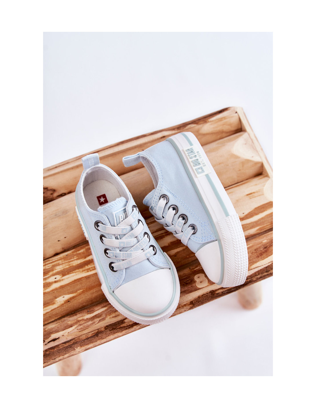 Kultiniai Big Star vaikiški sportbačiai yra pagaminti iš tekstilės medžiagos. Jie turi guminį, sustiprintą pirštą. Modelis pasižymi rąstinėmis elastinėmis juostomis, imituojančiomis raištelius. Padas su platforma pagamintas iš guminės medžiagos, kurios dėka šis modelis yra neslidus. Medžiaginis vidpadis. Klasikiniai sportbačiai tikrai puikiai tiks žaidimams ar pasivaikščiojimams. Renkantis dydį, naudokite dydžių lentelę.