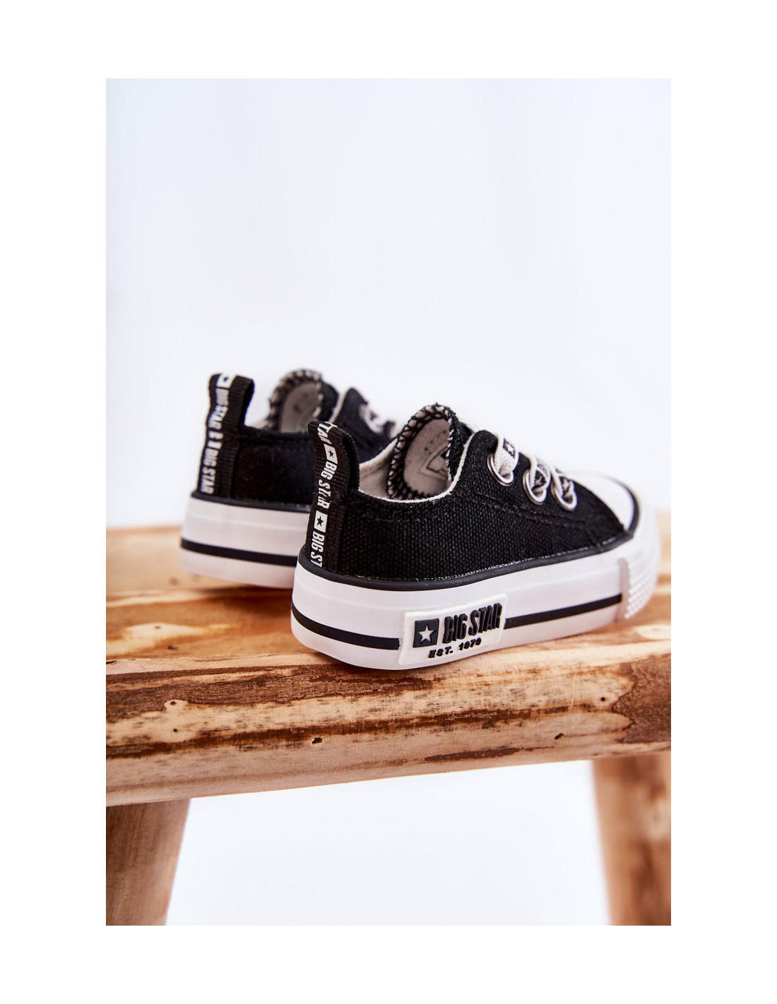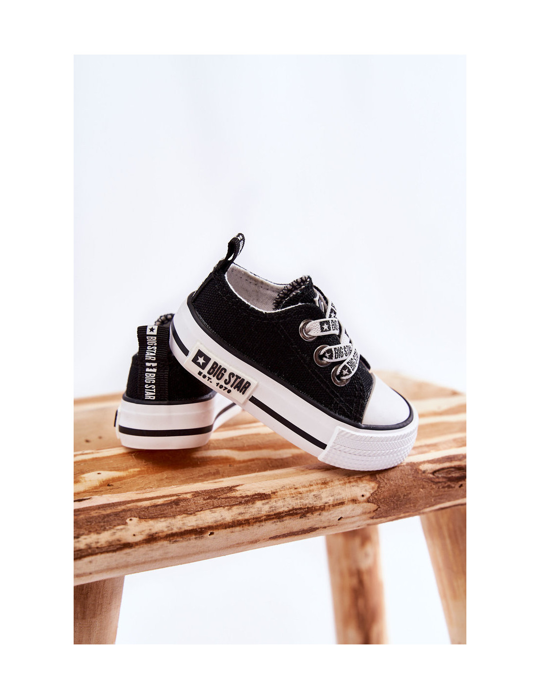 Kultiniai Big Star vaikiški sportbačiai yra pagaminti iš tekstilės medžiagos. Jie turi guminį, sustiprintą pirštą. Modelis pasižymi rąstinėmis elastinėmis juostomis, imituojančiomis raištelius. Padas su platforma pagamintas iš guminės medžiagos, kurios dėka šis modelis yra neslidus. Medžiaginis vidpadis. Klasikiniai sportbačiai tikrai puikiai tiks žaidimams ar pasivaikščiojimams. Renkantis dydį, naudokite dydžių lentelę.