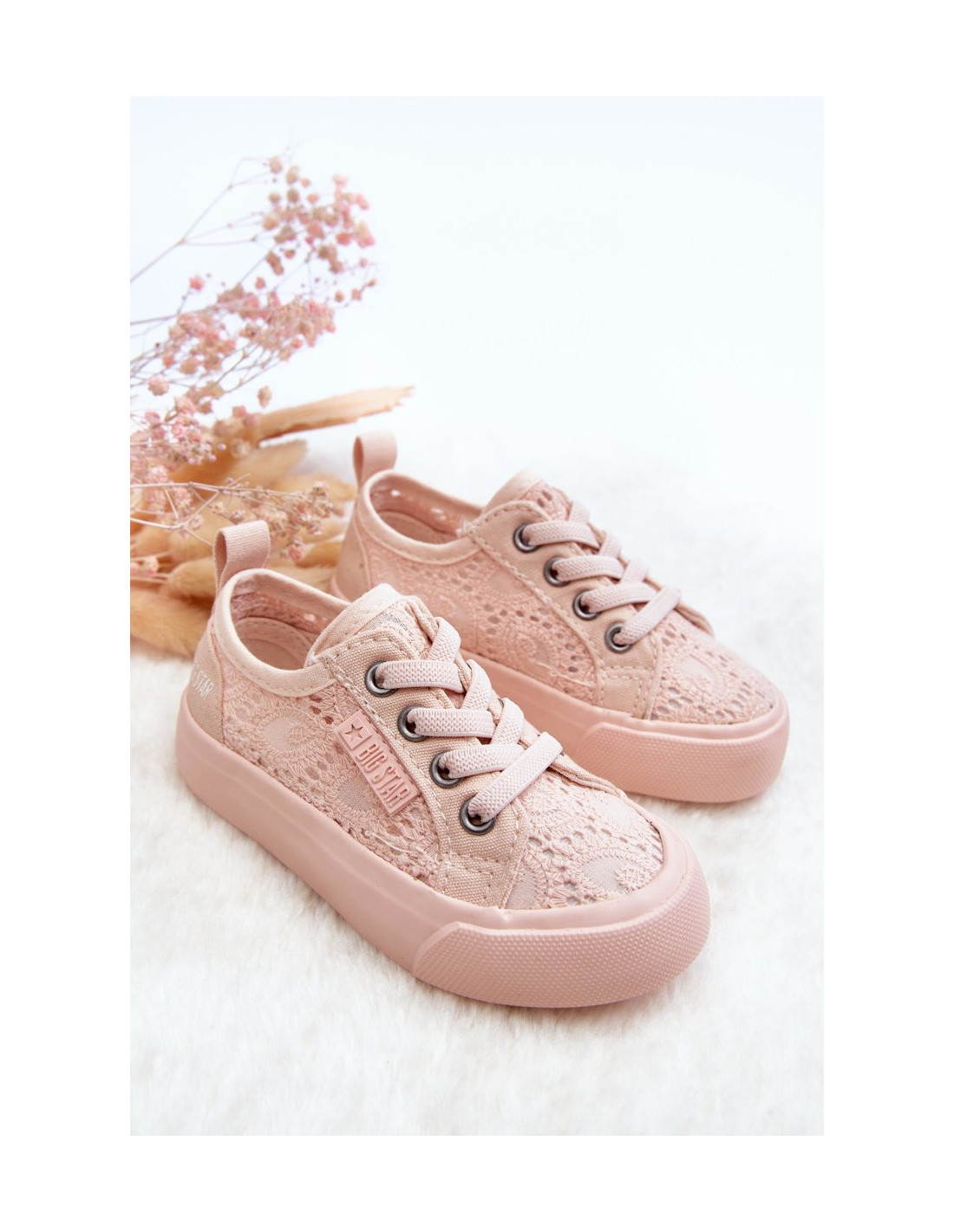 Nuostabūs BIG STAR vaikiški treniruokliai. Treniruokliai pagaminti iš tekstilinės medžiagos ažūriniu raštu. Jie turi neslystantį padą. Minkštas vidpadis suteikia komforto nešiojimo metu. Treniruokliai turi slydimo stiliaus ir guminius dirželius, imituojančius raištelius. Big Star prekės ženklo logotipas šone. Būtinai peržiūrėkite visą mūsų BIG STAR batų kolekciją! <17-21 dydžiai turi po 3 akutes nėriniams, 22-27 dydžiai turi po 4, o 28-35 dydžiai turi po 5 akutes. Rinkdamiesi dydį vadovaukitės dydžių lentele.