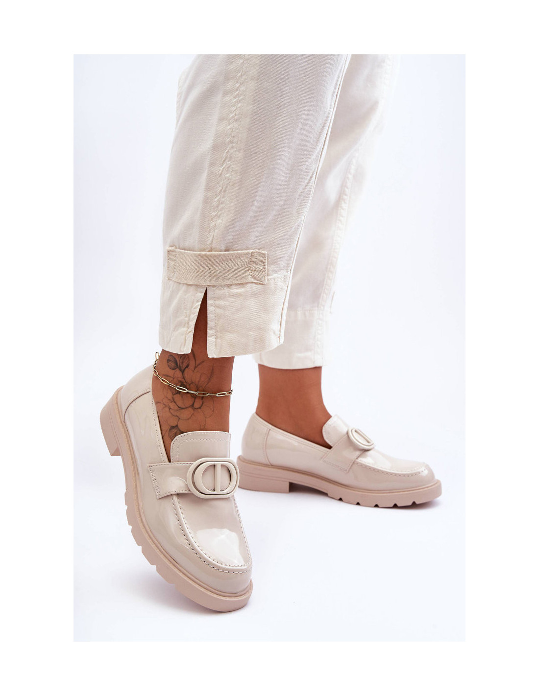 Šie madingi moteriški mokasinai pagaminti iš ekologiškos odos. Batai pastatyti ant masyvios platformos ir plokščio kulno. Dirželio priekyje yra nedidelis papuošimas. Eko odos vidpadis leis patogiai dėvėti avalynę. Puikiai tinka pavasario-rudens įvaizdžiui! Renkantis dydį, vadovaukitės dydžių lentele.