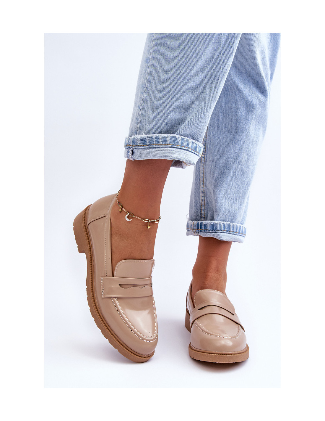 Patogūs moteriški mokasinai pagaminti iš ekologiškos odos. Šio modelio priekyje yra dirželis su subtilia išpjova. Mokasinai yra nustatyti ant plokščio kulno ir platformos. Kojos pirštas buvo švelniai sustingęs. Puikus modelis, tinkantis daugeliui pavasario-rudens sezono stilių. Renkantis dydį, žiūrėkite dydžių lentelę.