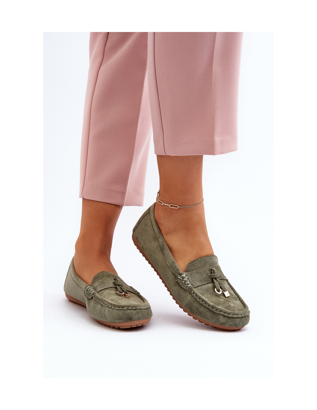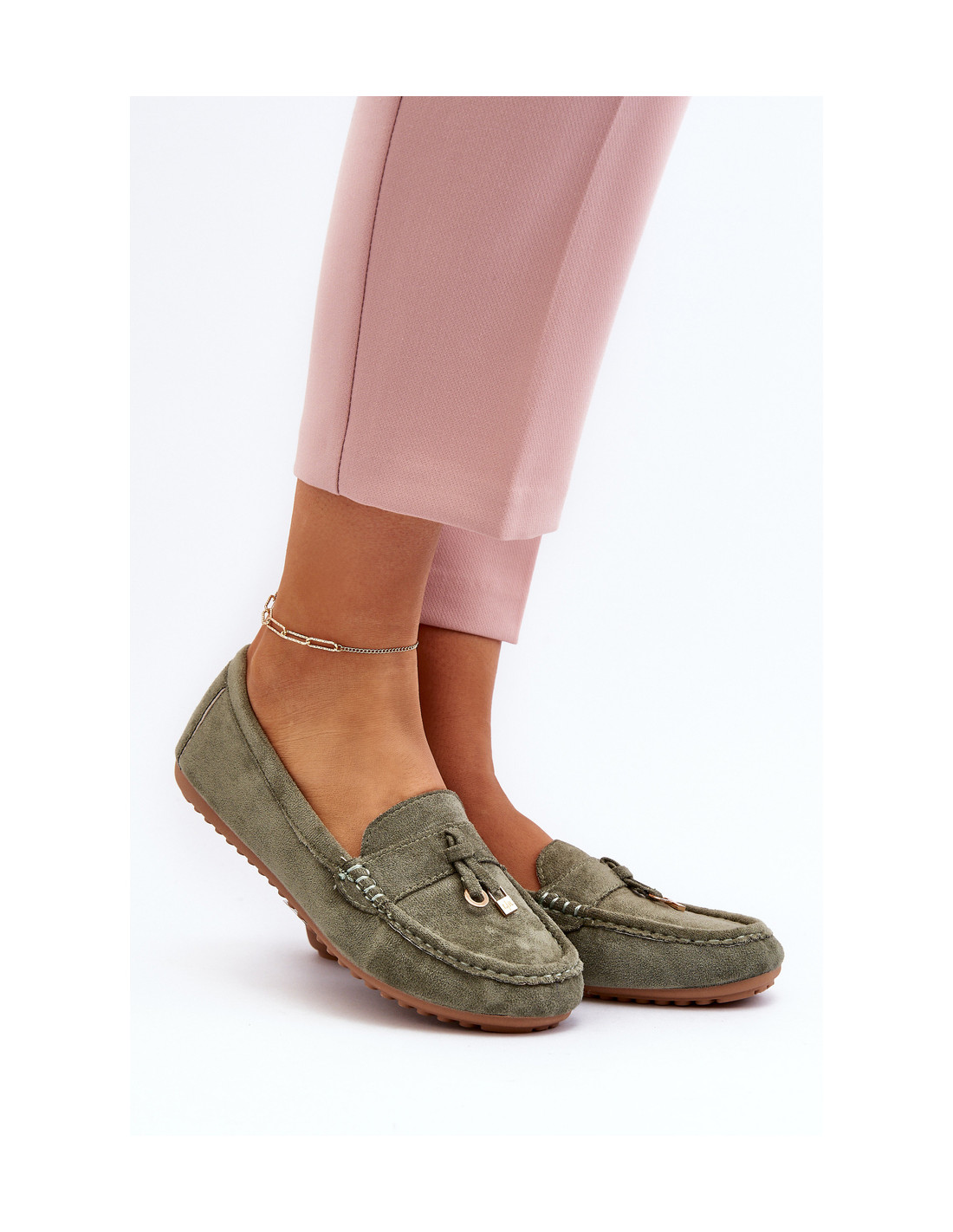 Moteriški zomšiniai klasikiniai mokasinai, žalia Ontala