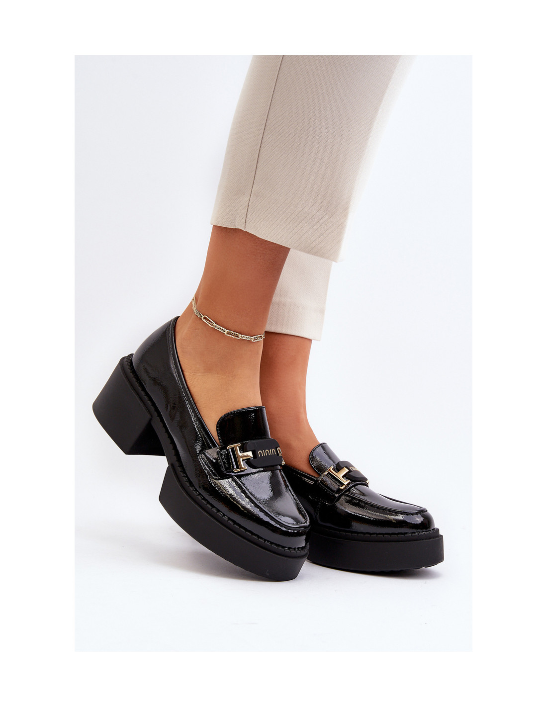 Moteriški lakinės odos mokasinai su masyviais kulnais, juodi Ridulvi