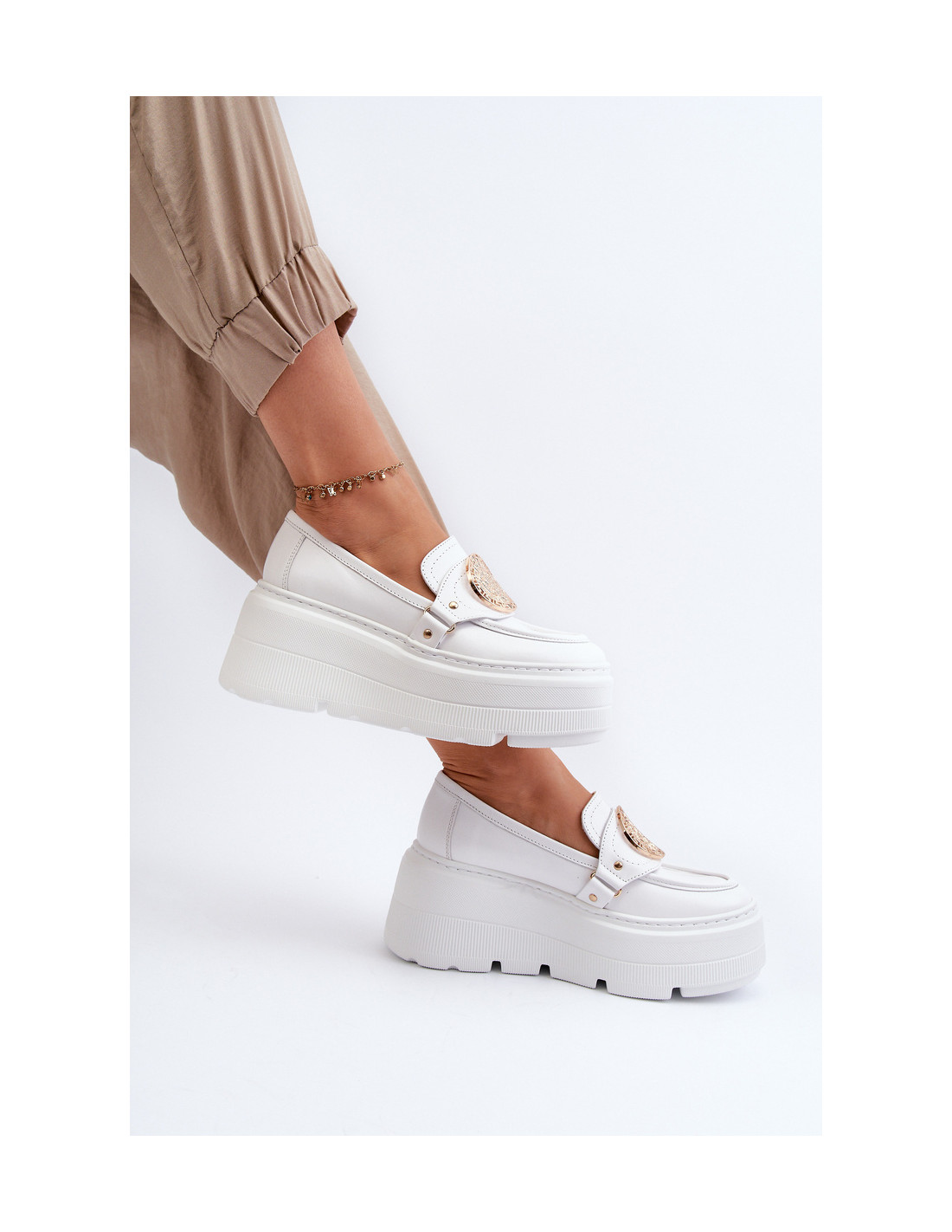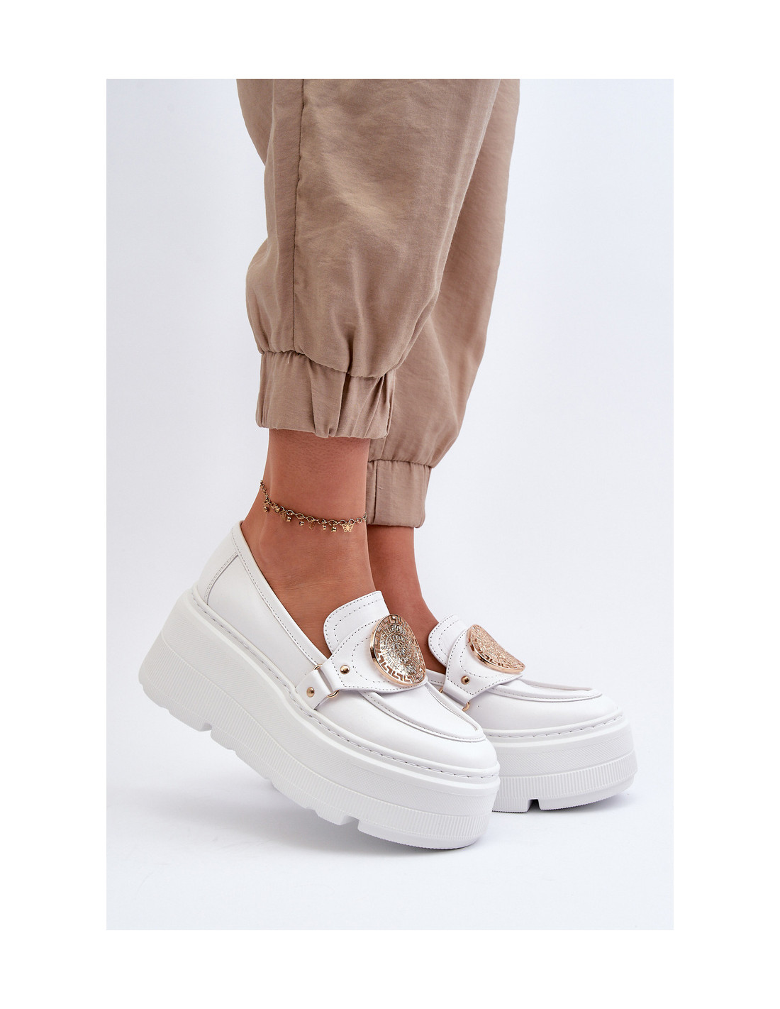 Moteriški mokasinai pagaminti iš natūralios odos, atkreipiant dėmesį į detales. Pastatykite ant didžiulės platformos ir pleišto. Priekyje puoštas diržas su aukso puošmena, kuri suteikia elegancijos. Puikiai tinka moterims, kurios vertina stilių ir patogumą! Renkantis dydį, vadovaukitės dydžių lentele.